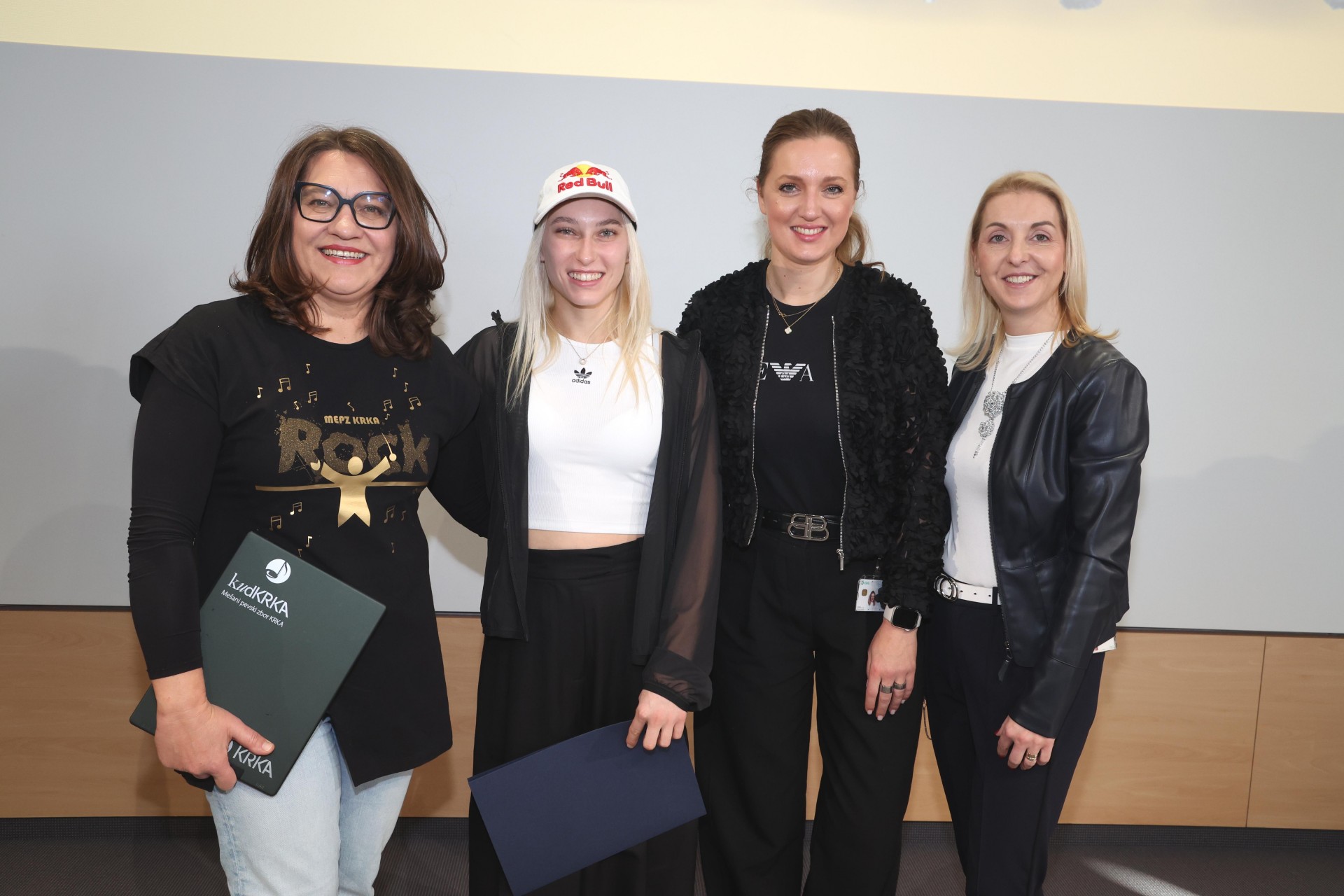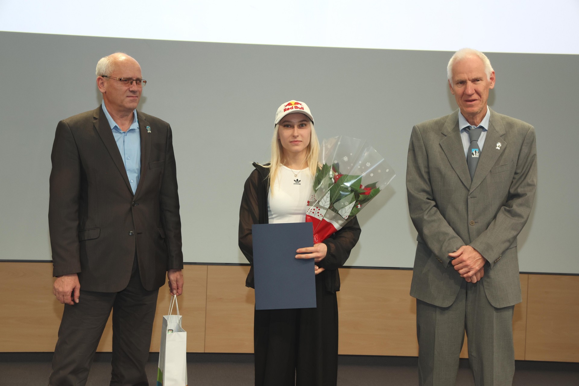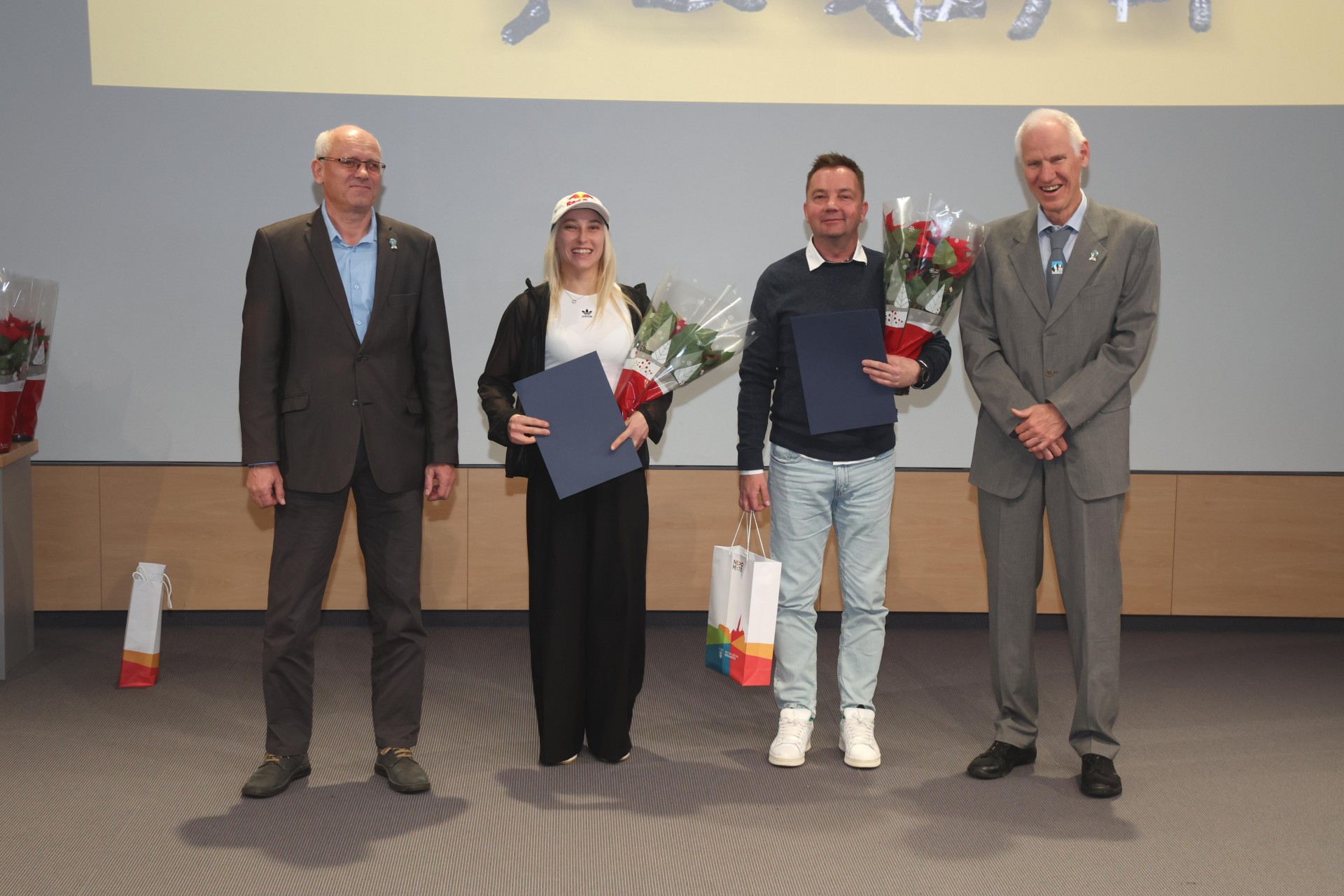 Zlati častni znak PZS sta prejela Janja Garnbret za izjemen prispevek k prepoznavnosti in priljubljenosti športnega plezanja doma in v tujini ter že drugo zlato olimpijsko medaljo, ter njen trener Roman Krajnik za odlično trenersko delo v športnem plezanju in soustvarjanje uspehov dvakratne olimpijske prvakinje. "Oba sva perfekcionista, vsak v svojo smer, kar dela zelo dober tim. Oba si tudi želiva zlato medaljo, ne zanima naju srebrna ali bronasta, zato tudi zlati častni znak. Dobro sodelujeva, dobro se razumeva, veliko je sklepanja kompromisov, pa tudi manjših nesoglasij, a vedno oba delava za isto stvar in sva složna," je o delovanju zlate naveze, ki jo je občinstvo nagradilo z gromkim aplavzom, spregovorila dvakratna olimpijska prvakinja, ki je priznala, da je dan prej še vedno jokala, ko je gledala posnetek svojega olimpijskega nastopa: "Olimpijsko medaljo iz Pariza še vedno doživljam zelo čustveno, ker vem, koliko sebe sem dala vanjo, zato je vedno, ko bodisi vidim sliko ali posnetek, zelo čustveno." Tokratno občinstvo je bilo malce drugačno kot sicer na njenih tekmah, a se je izkazalo, da so zelo goreči navijači: "Ta podpora mi ogromno pomeni. Ko poslušaš njihove zgodbe, so res navdihujoče in mi dajejo dodatno motivacijo in zagon. Počaščena sem, da sem v takšni družbi."