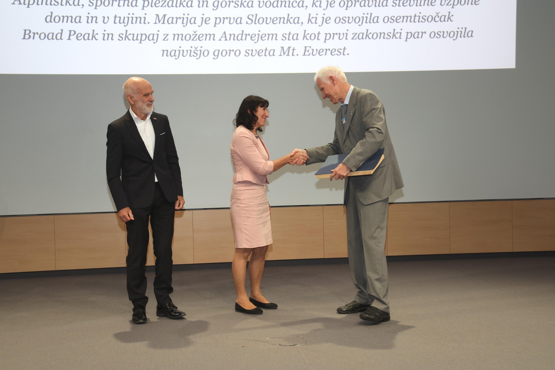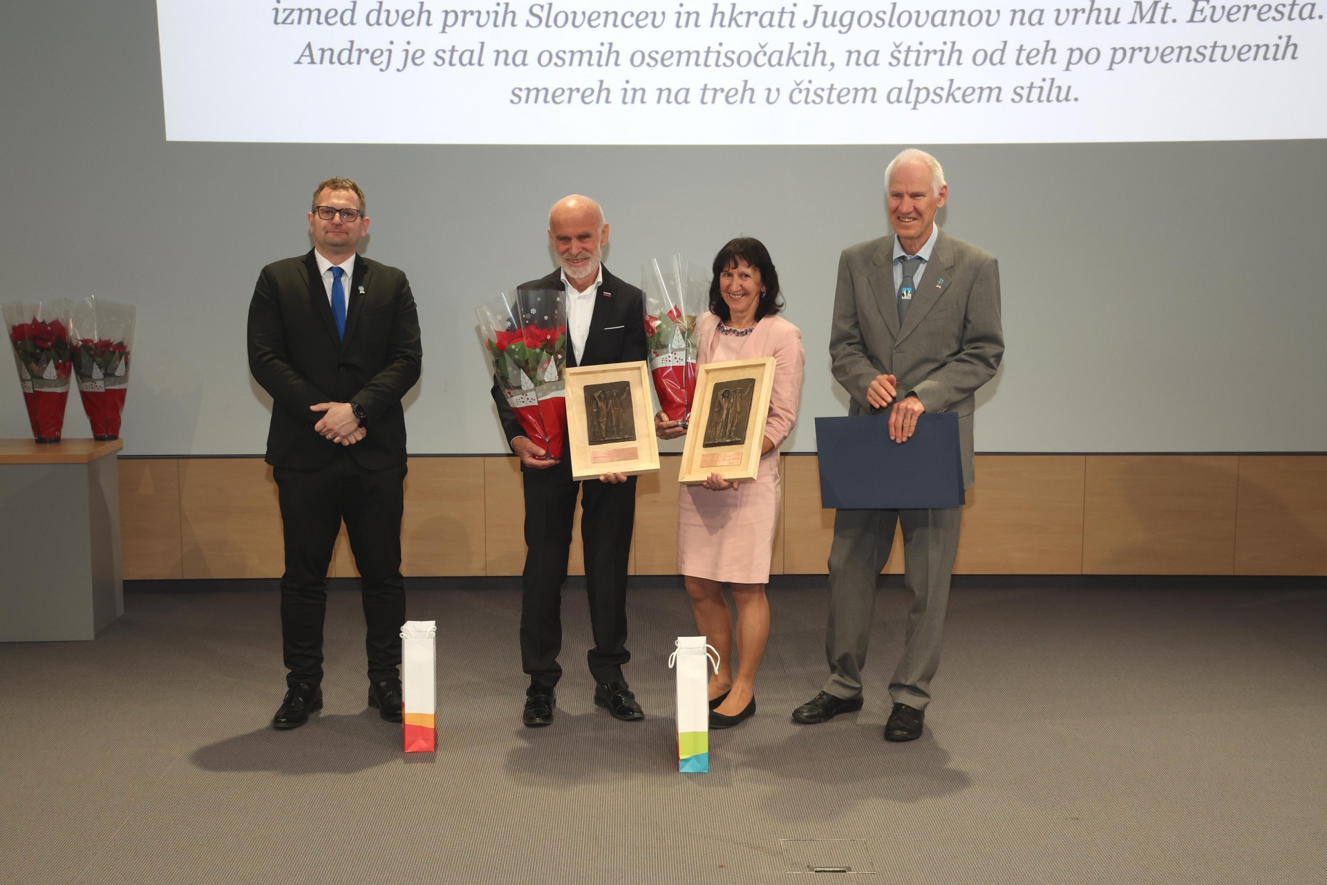 Z najvišjim priznanjem, častni član Planinske zveze Slovenije, se je planinska organizacija poklonila vrhunskima alpinistoma Mariji in Andreju Štremfelj. (foto Manca Ogrin)