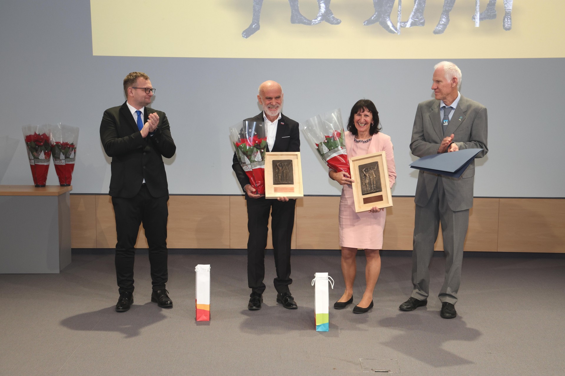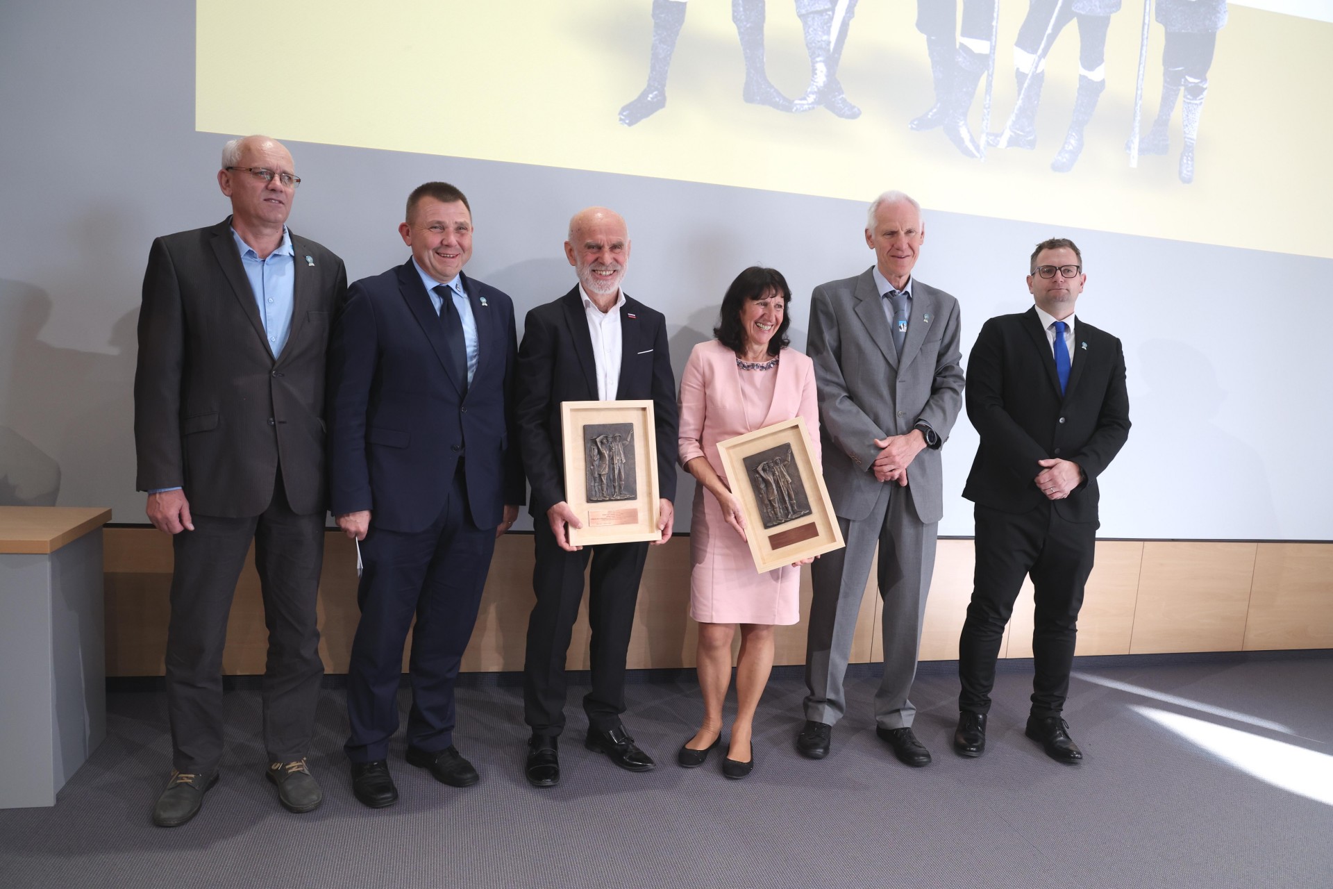 Zakonca Štremfelj častna člana PZS, zlati častni znak Janji Garnbret in Romanu Krajniku, najvišja priznanja prostovoljcem v planinstvu (foto Manca Ogrin)