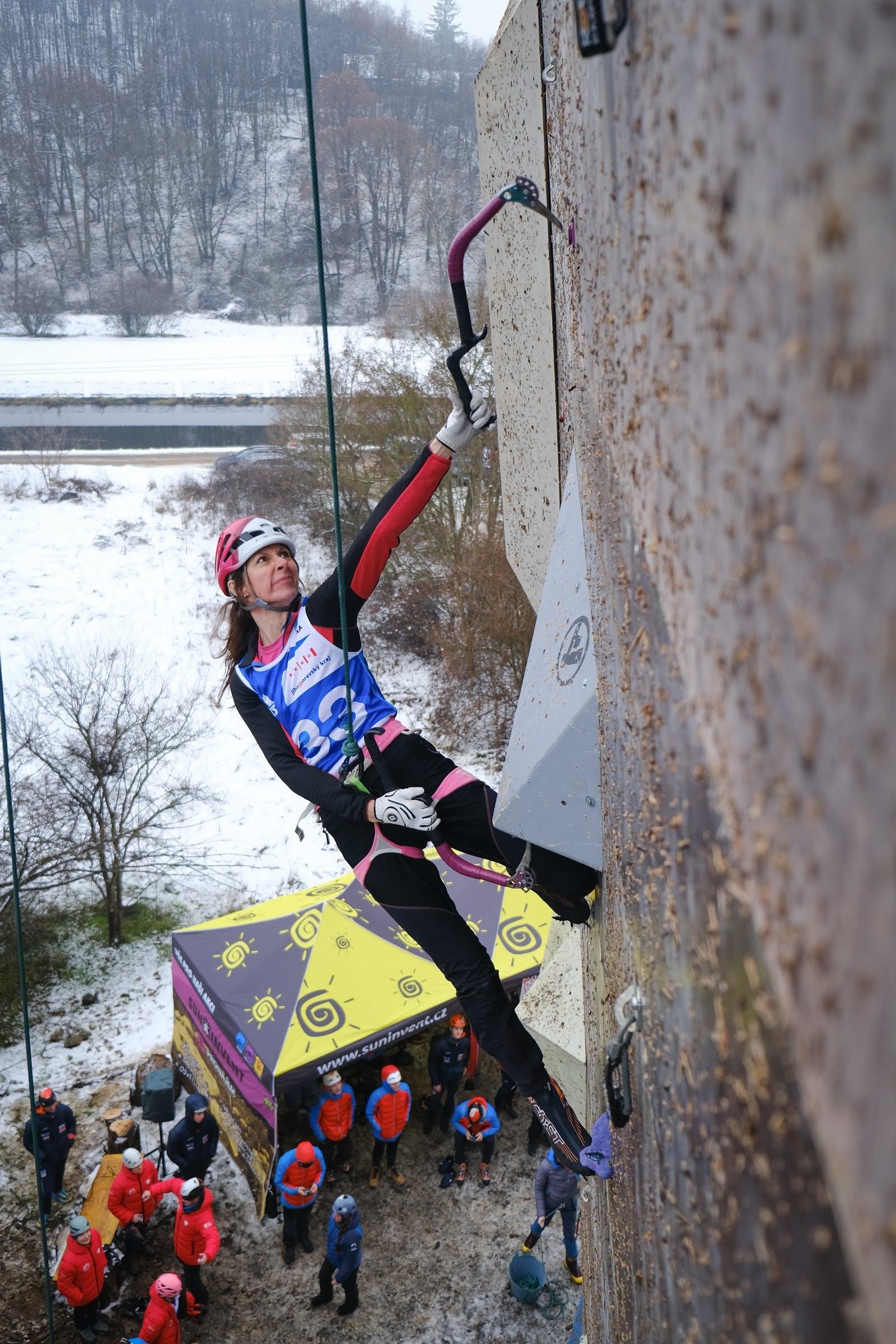 Maja Šuštar Habjan osma na tekmi celinskega pokala v tekmovalnem lednem plezanju v Brnu. (foto Martin Tesar)