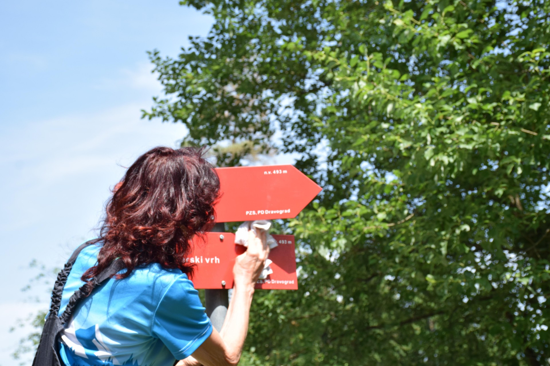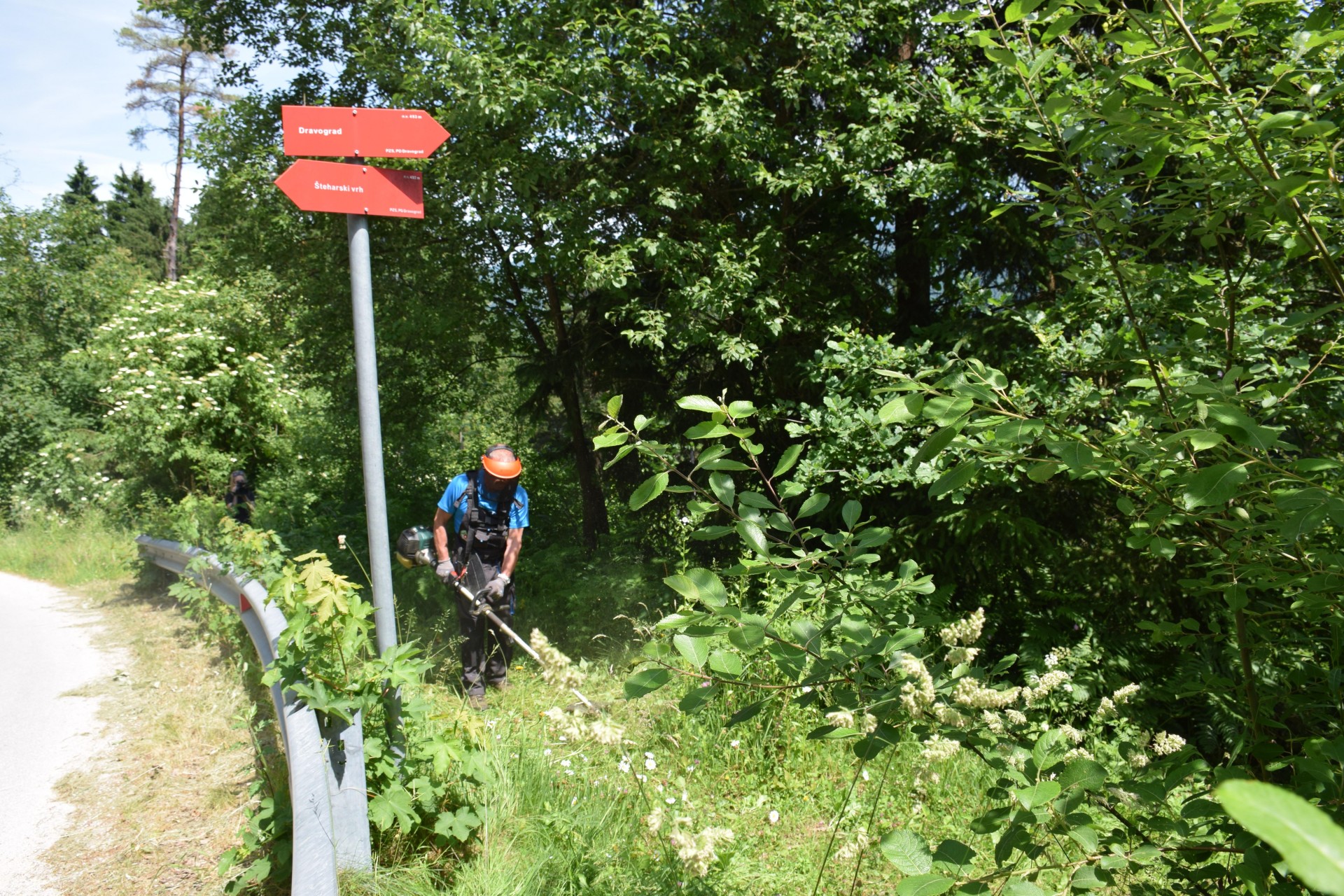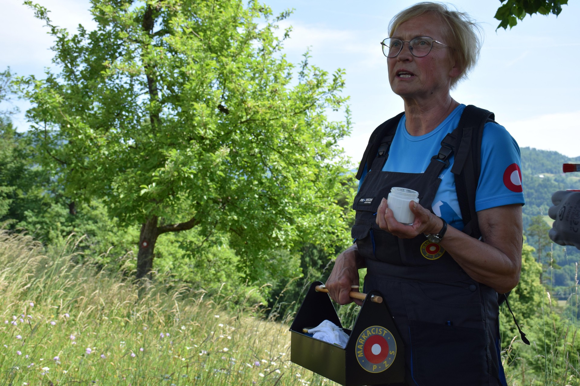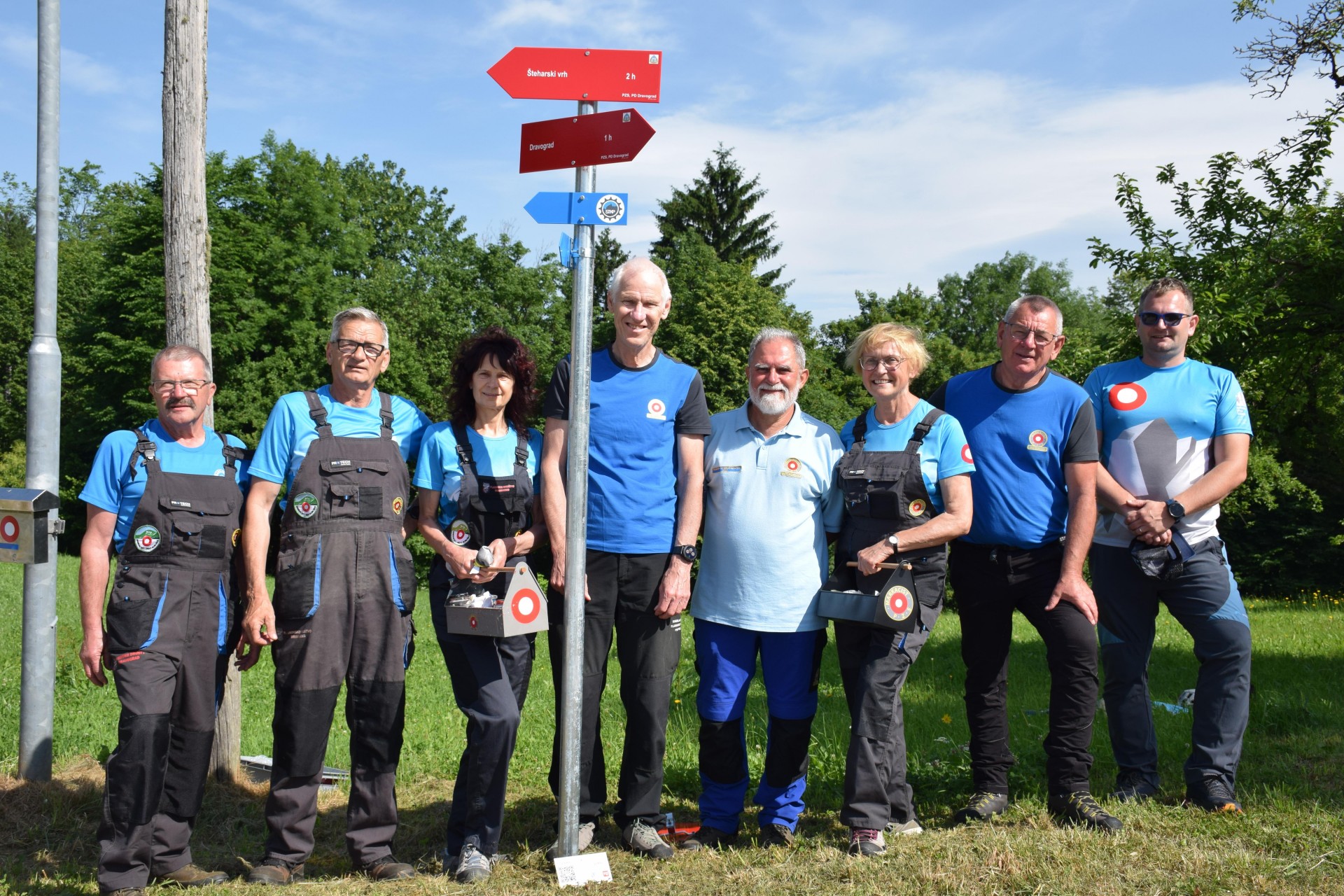 Markacisti PD Dravograd so na planinski poti proti Šteharskemu vrhu, ki je del Koroške planinske poti, prikazali čiščenje poti, in sicer Marjan Epšek in Ivan Lužnic košnjo trave in žaganje vej, Ivana Kotnik in Brigita Skrube pa markiranje poti in čiščenje usmerjevalnih tabel. Na drevo sta narisali najprepoznavnejšo oznako, rdeč kolobar z belo piko v sredini - Knafelčevo markacijo, ki nas že 103 leta vodi po planinskih poteh. "Markacijo se riše tako, da je vidna v smeri hoje. Običajno je narisana v višini oči na desni strani na drevesih, skalah, včasih tudi na drugih objektih. Takoj za razpotjem je navadno vidna naslednja markacija, ki potrdi, da smo na pravi poti. Markacijo je uvedel planinec in kartograf Alojz Knafelc leta 1922 in se zato imenuje po njem - Knafelčeva markacija," je povedala Ivana Kotnik.