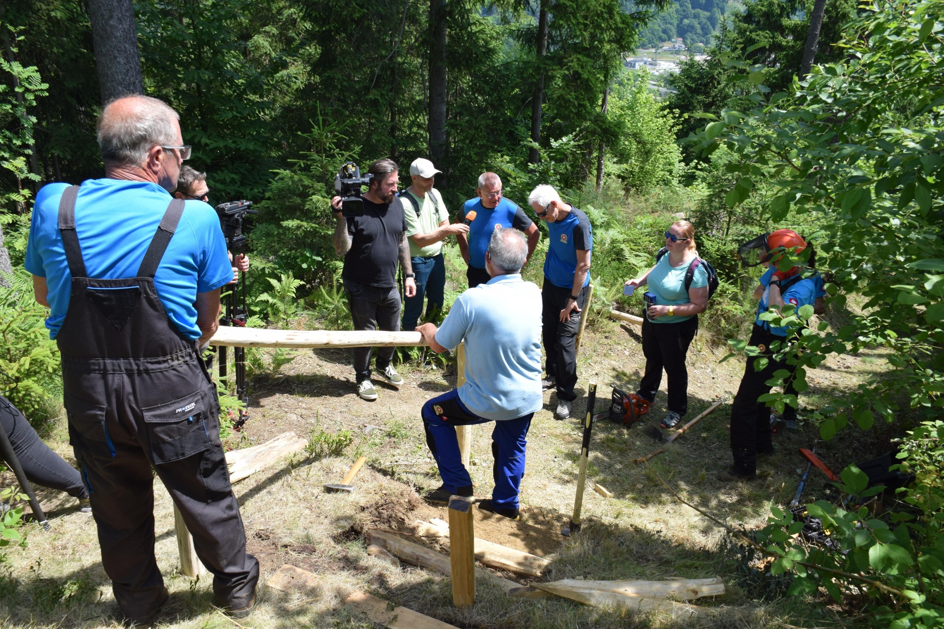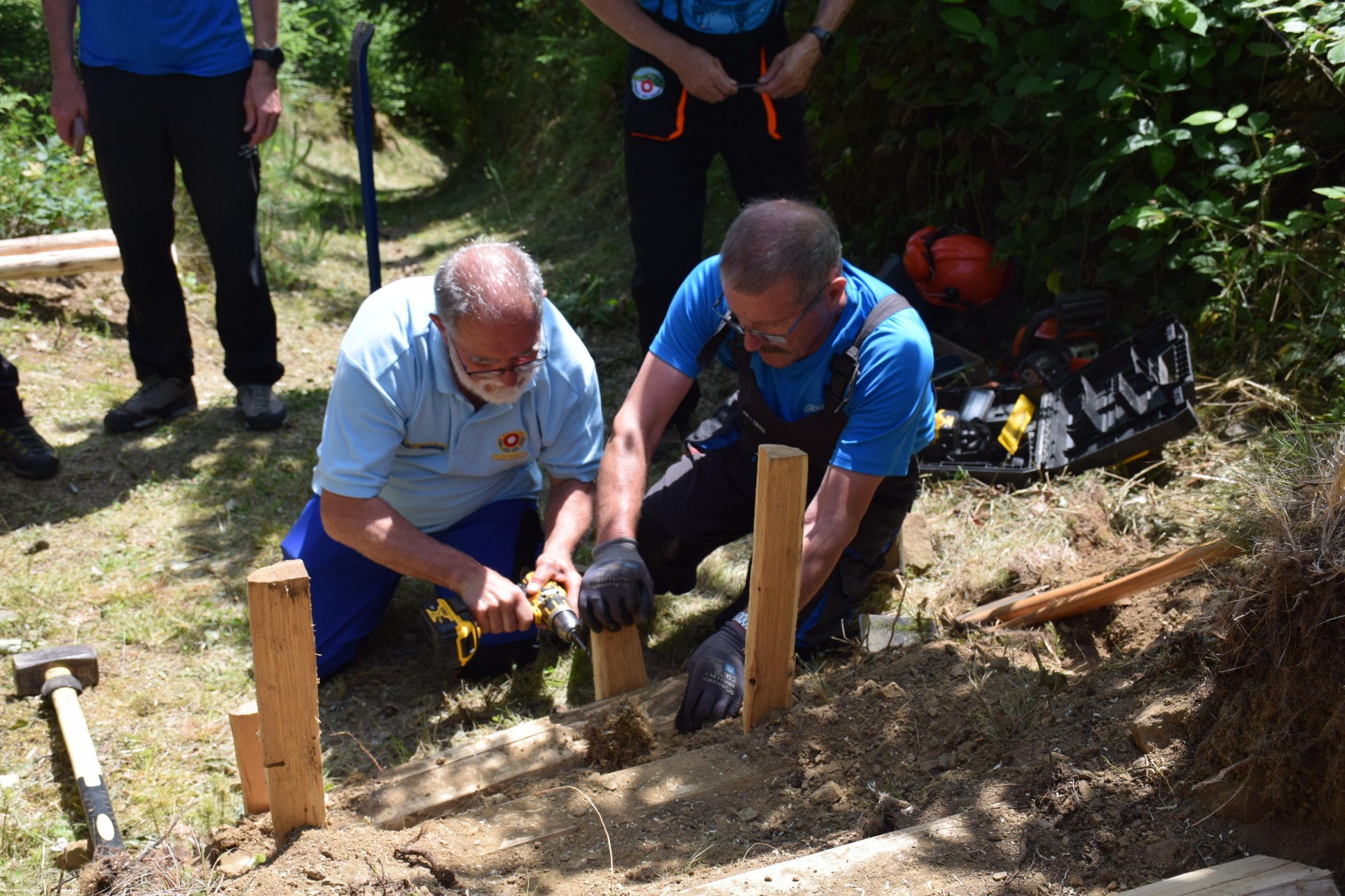 Koroški markacisti so prikazali tudi nadelavo stopnic, ki se izdelujejo za varnejši prehod strmega dela planinske poti. (foto Manca Ogrin)