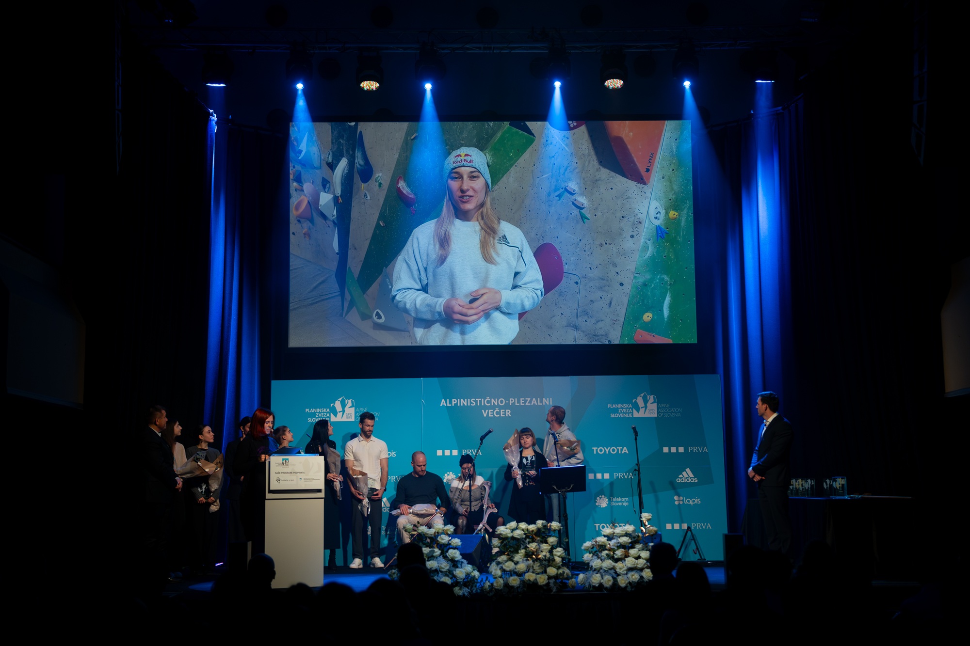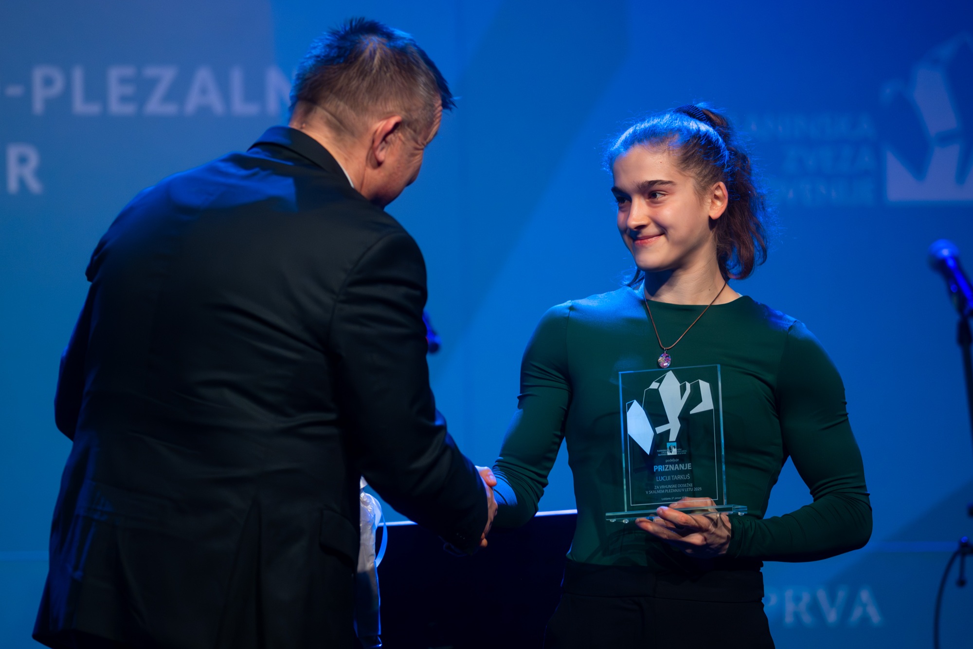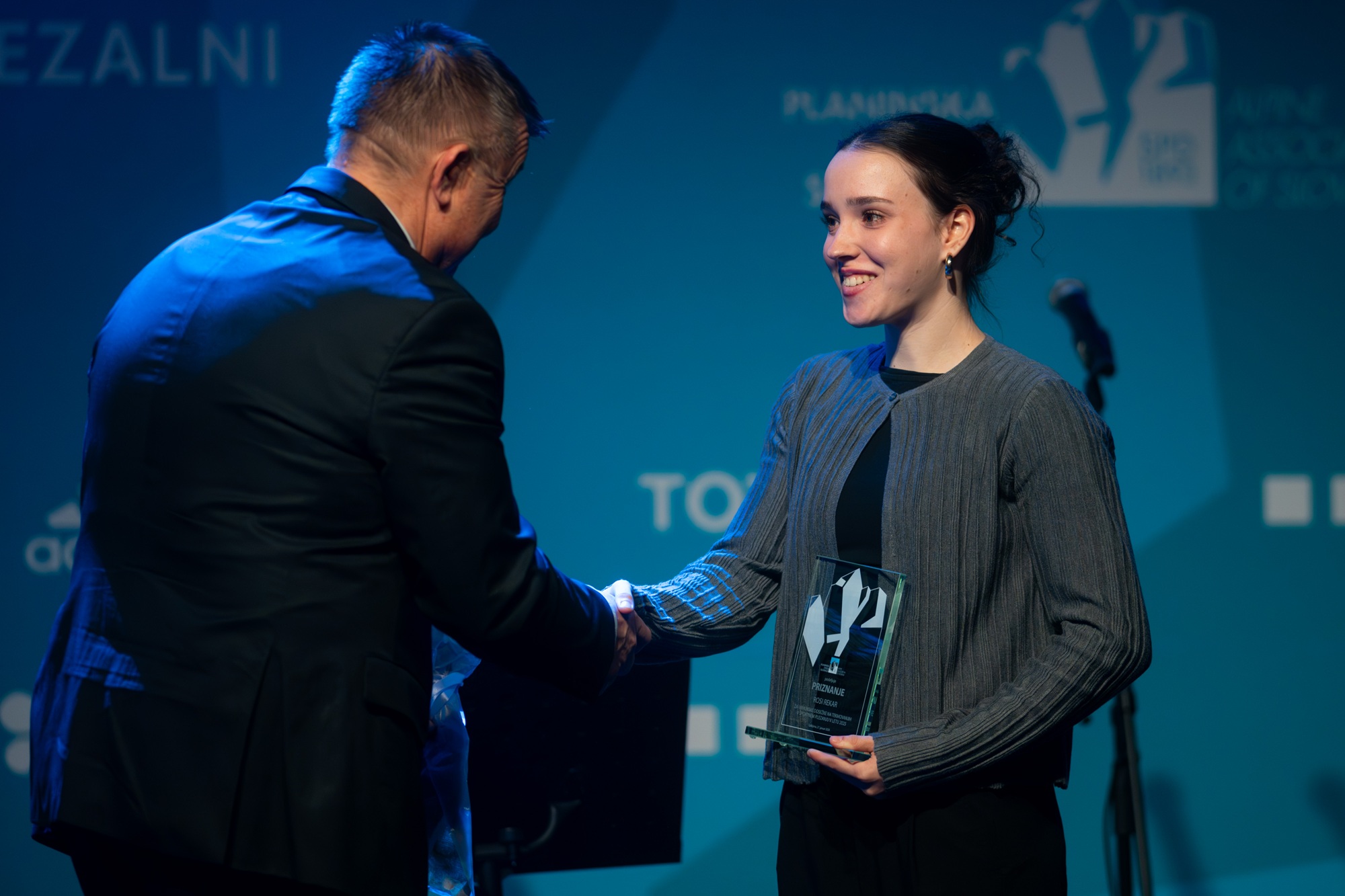 JANJA GARNBRET, najuspešnejša športna plezalka 2025 (odsotna na podelitvi): "Leto 2025 je bilo zame nekoliko drugačno, a hkrati izjemno zanimivo. Zgodilo se je ogromno stvari, izpeljala sem veliko projektov, predvsem v skali, hkrati pa je bila tudi tekmovalna sezona zame zelo zelo uspešna. To je bila sezona, ki te izoblikuje ne le kot športnico, ampak tudi kot osebo, tako da se veselim leta 2026. Imam veliko projektov, sploh v skali, ki jih želim odkljukati, kmalu bo tudi znano, na katerih tekmah bom letos tekmovala. Motivacije je veliko, energija je prava in res se veselim vsega, kar prihaja. Upam, da se kmalu spet vidimo nekje v skali ali na tekmah, zagotovo pa se vidimo na svetovnem pokalu v Kopru. Hvala za nagrado in srečno, se vidimo."