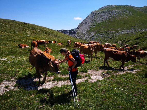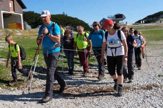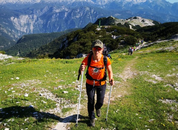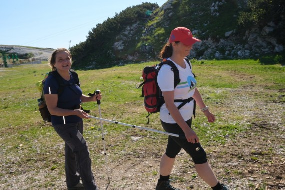 Tina: »Prvič sem na takem pohodu. Dobila sem po mejlu vabilo in mi je bilo všeč. Dosti hodim v hribe in me je včasih strah težjih poti, kako bom speljala, kako ne. Pri spustih nisem sigurna vase. Sem si rekla, da je mogoče tako s celo skupino lažje. Vsak malo pove, kako je kakšna stvar, predvsem me je strah tega navzdol in je lažje s skupno. Da ne delam zastojev. Bilo mi je všeč, bova še šla.«