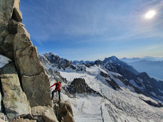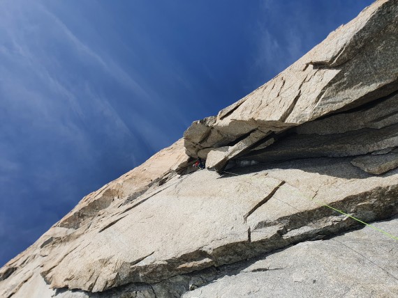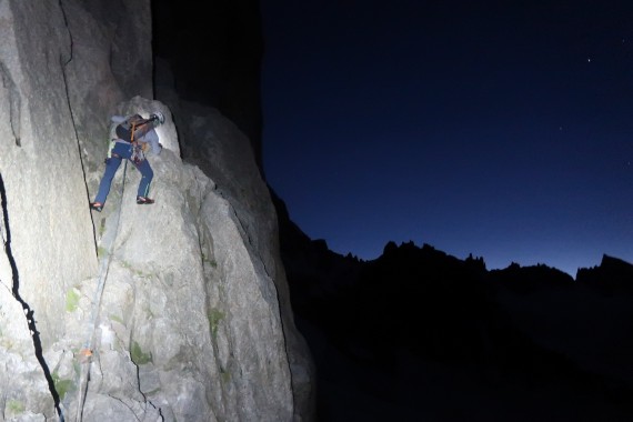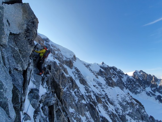Mont Blanc, Grand pilier d'Angle - Divine Providence 900m ED+, 7b+, 15,5h za smer 32h za celotno turo (Koča Torino - Val Veny, 5h spanje na bivaku Vallot)