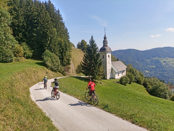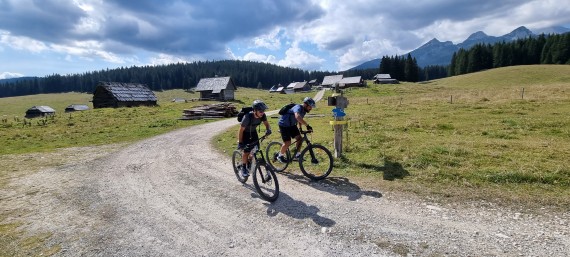 Preko Soriške planine smo se spustili v Bohinjsko Bistrico. Po Klodičevi kolesarski poti smo kolesarili do Ribčevega Laza in nato skozi Staro Fužino v zgornjo Bohinjsko dolino, kjer smo pričeli vzpon na planino Uskovnica. Ker Planinsko kočo na Uskovnici trenutno prenavljajo, smo se povzpeli še do kapelice na planini, nato pa se vrnili v Staro Fužino, kjer smo zaključili našo turo. Naredili smo 58 kilometrov in premagali 1500 višinskim metrov. Tura je bila ravno prav naporna, tako da smo res uživali.« Grega je na pot peljal dva kolesarska navdušenca.