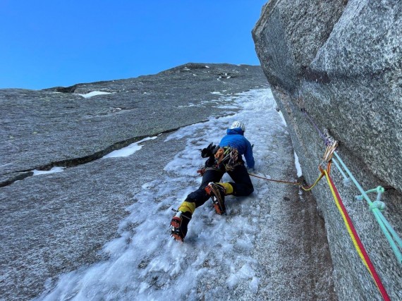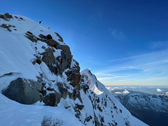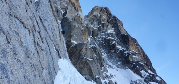 V nedeljo smo se v dveh navezah družno odpravili plezat v Pelerins-e, kjer sta nas smeri Rebuffat-Terray in Beyond good and evil pričakali v dobrih razmerah. V smereh so nam delale družbo še druge naveze, vendar smo do vrha stene vztrajali le mi.