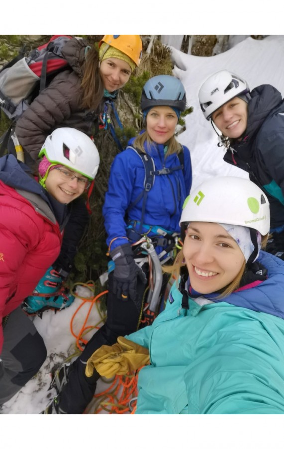 • Alenka Verbuč: Tabor, na katerega sem se prijavila v rahlih dvomih, če s svojo kratko kilometrino v zimskih vzponih sploh sodim tja. Ampak, za kaj pa so tabori, če ne za nabiranje izkušenj in učenje od izkušenejših? Ta vikend je presegel vsa pričakovanja. 24 močnih, snega, ledu in skale željnih punc, pozitivna energija, nova prijateljstva, nepozabne zgodbe, sproščene debate, spodbudne besede, učenje malih skrivnosti velikih mojstric, cel žur na štantih, prekratke noči, zavedanje, da babe zmoremo, odlično vreme (kljub tako številčni ekipi punc), dobra organizacija s strani Anje in Neli, navdihujoče predavanje Jasne Pečjak, prijaznost in ustrežljivost oskrbnikov na Mihovem domu... Vse to in še več je bil prvi ženski zimski tabor. Upam, da tradicionalen. Res sem vesela in hvaležna, da sem imela priložnost biti zraven.