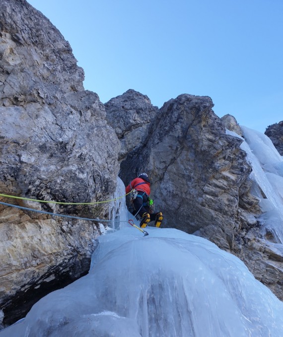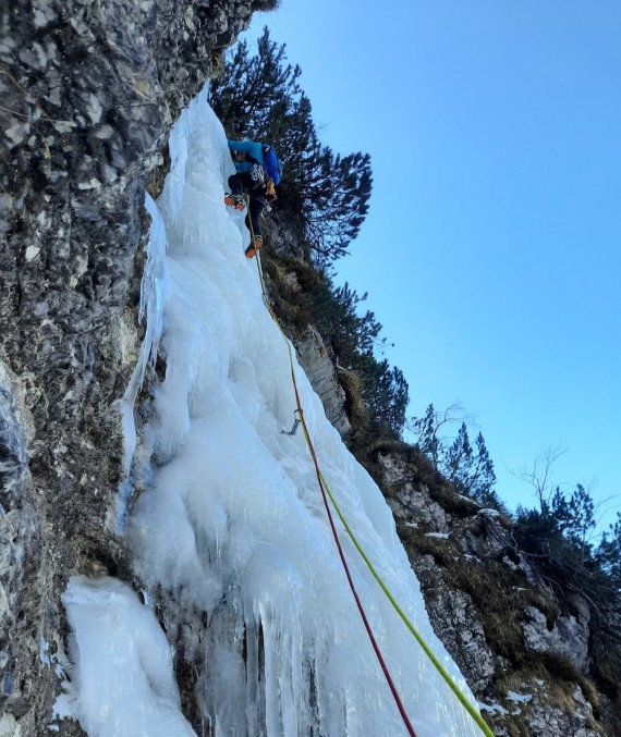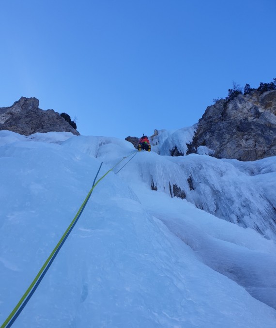 • Desni slap, WI4+, 150 m, Prisojnik - Kunaver, Polutnik, Kešar