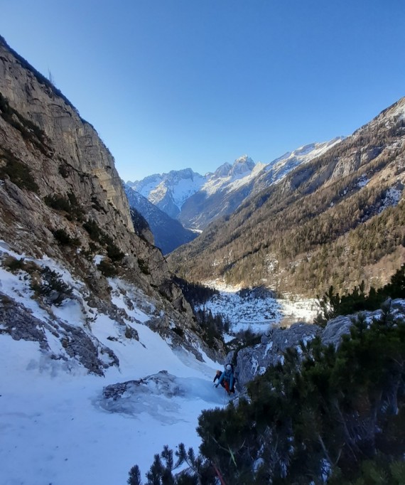 • Srečno Kekec WI3+, 150 m, Planja - Verdev, Verbuč, Lamut