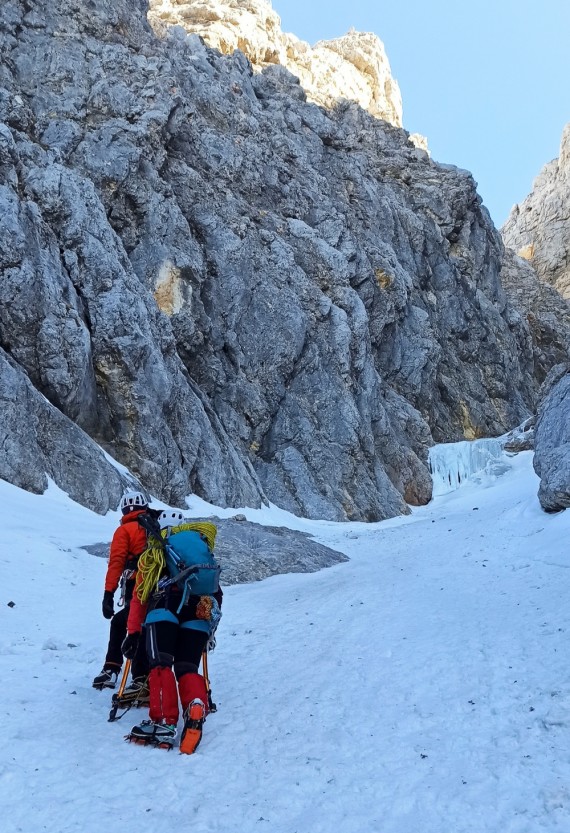 • Anja Ulaga: Že mail kjer sem bila seznanjena, da sem ena izmed udeleženk zimskega tabora, je poskrbel za začetno navdušenje. V petek 11.2.2022 smo se tako pričele počasi nabirat v koči, navezovat stike, iskat cilje. Iz ure v uro je bilo boljše vzdušje in energija, ki te takoj prevzame in poskrbi za tisto rahlo nemirnost in pri meni se je že porajalo vprašanje ... kdaj bo že jutro, da lahko oprtam nahrbtnik in grem v smer z novo kreirano navezo? Zame je bila to neprecenljiva izkušnja, nisem spoznala samo novih smeri in uživala v novem zimskem ambientu Bogovske in Uroševe grape, snegu, ledu, skali in pomrznjenih travah. Dobila sem mnogo več ... nove izkušnje, saj sem lahko opazovanje eleganco gibanja in napredovanja izkušenejših plezalk, izmenjavo njihovih znanj in izkušenj ter ob tem pridobila nove ideje za smeri in oblikovala nova poznanstva, s katerimi se bom lahko v bodoče podala v smeri. Hvala za odlično vodenje tabora Anji in Neli ter vsem izkušenejšim plezalkam, ki so nas varno vodile čez smeri in PZS-ju za organizacijo tabora in vso gurmansko razvajanje in gostoljubje oskrbnikoma na Mihovem domu.