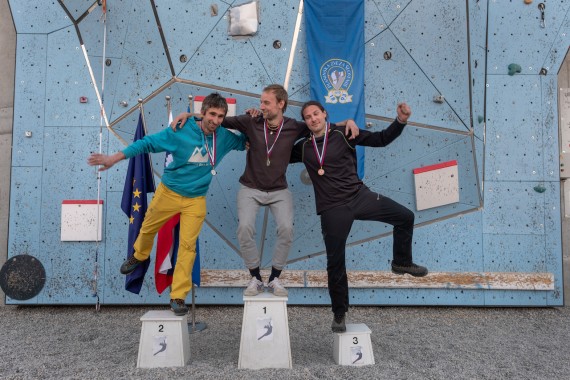 V moški konkurenci si je zmago z zanesljivim vrhom - čeprav je gledalcem vmes večkrat zastal dih - priplezal Marko Guna (AO PD Rašica), ki je po tekmi dejal, da je bila "zanimiva tekma, z nogami je bilo malo težje kot z rokami, na koncu pa sta mirna kri in dovolj moči pripomogli do zmage". Vrh, a v nekoliko daljšem času, je dosegel tudi drugouvrščeni Milan Makojević (KES Armadillo) iz Srbije, na tretje mesto pa se je zavihtel Tine Cuder (AO PD Nova Gorica). Od četrtega do osmega mesta so se zvrstili Nace Grgorinič (AO PD Kranj), Vili Guček (AO Špaltna), Sebastjan Leskovšek (AO Špaltna), Bor Levičnik (AO PD Ljubljana Matica) in Nejc Anžlovar (AO PD Kranj).