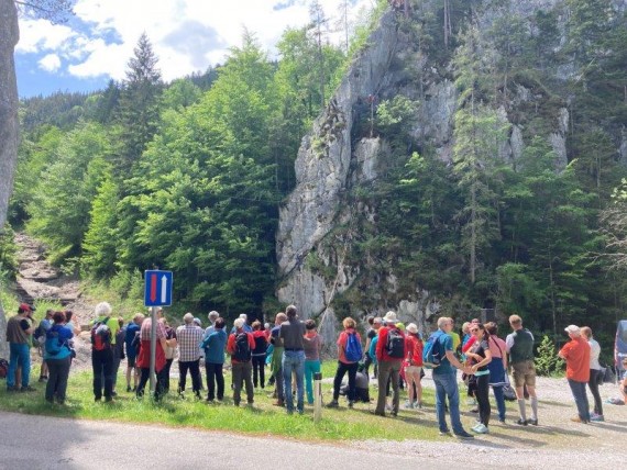 Na terenu smo si ogledali informacijski točko parka Weidendom, kjer so v skupinah potekale tudi predstavite s pogovori na teme: Izzivi in sporne točke za turizem na zavarovanem območju, Osebna odgovornost na naravnih poteh - koncept poti v narodnem parku, predatorji in turizem. Posebno skupno predavanje je bilo poglobljeno razmišljanje dr. prof Peskoller, tudi alpinistke, o vzgoji alpinizma in perspektivah odnosa do narave skozi antropocentrizem.