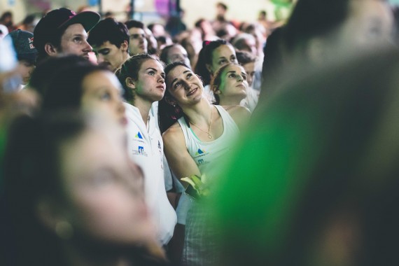 Kaj počnejo tekmovalci, ko niso v steni? Kam je usmerjen njihov pogled?