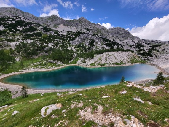 Po poti se sladkamo z jagodami, ki so tu okusnejše kot v dolini. Še kar nekaj ovinkov se moramo povzpeti, da prispemo do Zasavske koče na Prehodavcih. Tu malo predahnemo in se okrepčamo, da lažje nadaljujemo pot, po kateri se vrstijo Triglavska jezera pod mogočnimi Hribaricami in Zelnaricami. Najlepše je jezero Ledvička med Malo in Veliko Zelnarico. Vso pot se spuščamo med cvetočimi travniki, kjer med pisanim planinskim cvetjem prevladuje rumena preobjeda.