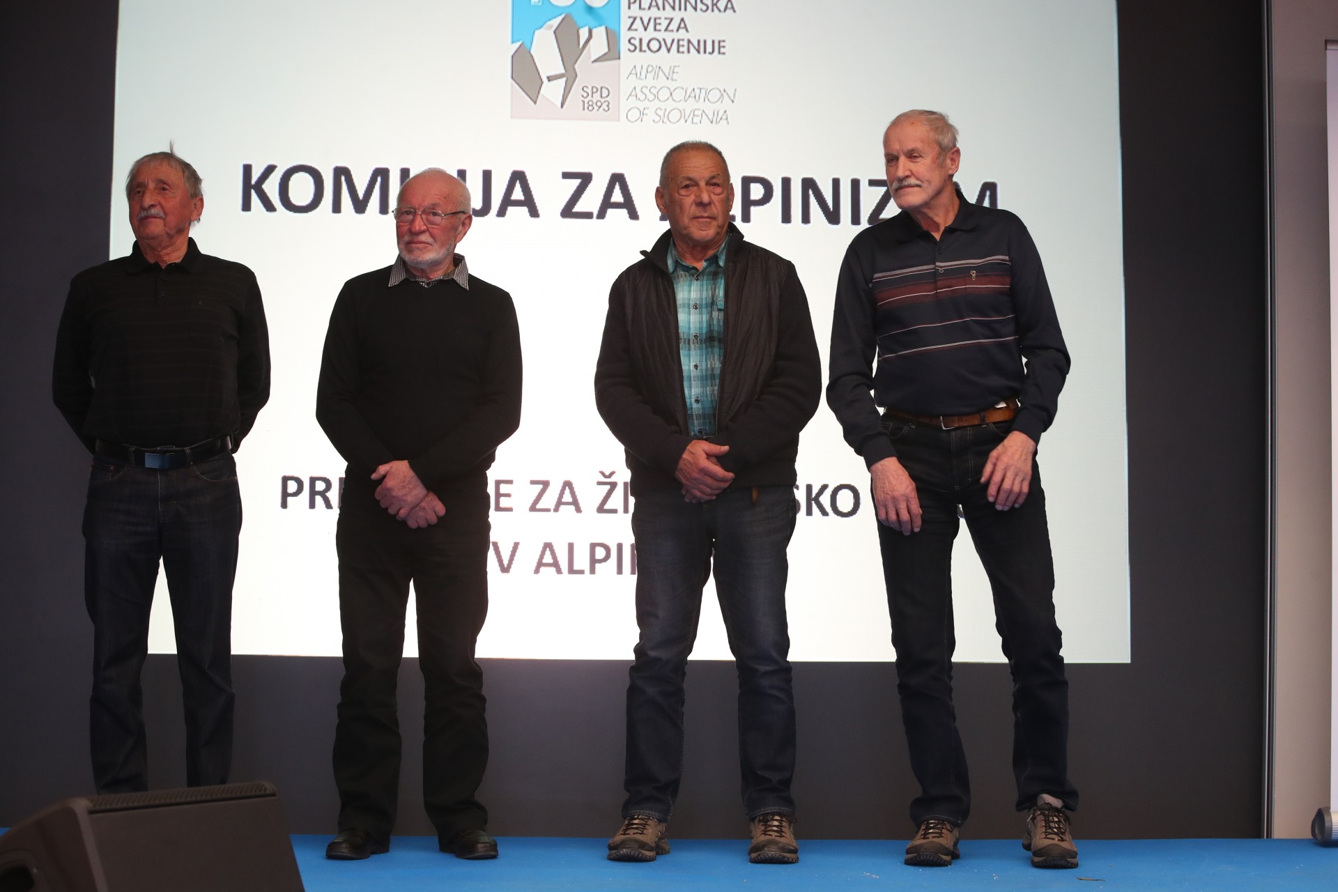 Letošnji prejemniki priznanja za življenjsko delo v alpinizmu so Mojstranške veverice (Janez Brojan, Klavdij Mlekuž, Janko Ažman in Janez Dovžan; posthumno Zvone Kofler in Miha Smolej), ki so šestdesetih in sedemdesetih letih prejšnjega stoletja dodobra razburkali domačo alpinistično sceno, prav tako so s svojimi podvigi zbudili pozornost preko meja. V domačih stenah, Dolomitih in Centralnih Alpah so opravili vrsto zahtevnih vzponov. Bili so jedro Gorske reševalne službe Mojstrana, ki je v tistem času opravila največja in najtežja reševanja v gorah.