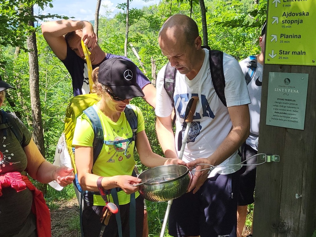 Vseslovenski inkluzijski pohod je oprt na korporativno prostovoljstvo ter povezuje gospodarstvo in nevladne organizacije. Tako so bili tokrat z nami zaposleni iz podjetja Autocommerce in Frey services, ki so se preizkusili v vlogi spremljevalcev slepih pohodnikov. Kot je po pohodu povedala Jana, so se odlično odrezali. »Moj spremljevalec Uroš je hitro ugotovil, kaj potrebujem in kaj ne, dobro sva se ujela. Ni bilo ne odvečnih besed, ne premalo opisov in navodil. Super nama je šlo. Prav tako ni bila ovira, da sva bila »višinsko« nesorazmerno porazdeljena, jaz majhna, on velik. Prostovoljci iz podjetja so imeli pravi športni dan. Tudi oni so bili zadovoljni, veseli. Čeprav se večkrat udeležujejo takšnih akcij, tudi nas so spremljali že pred dvema letoma, so še vedno zelo presenečeni, kako nam to uspeva. Na poti smo s pomočjo posode, ki smo jo zavrteli poslušali žuborenje Lintverna.«