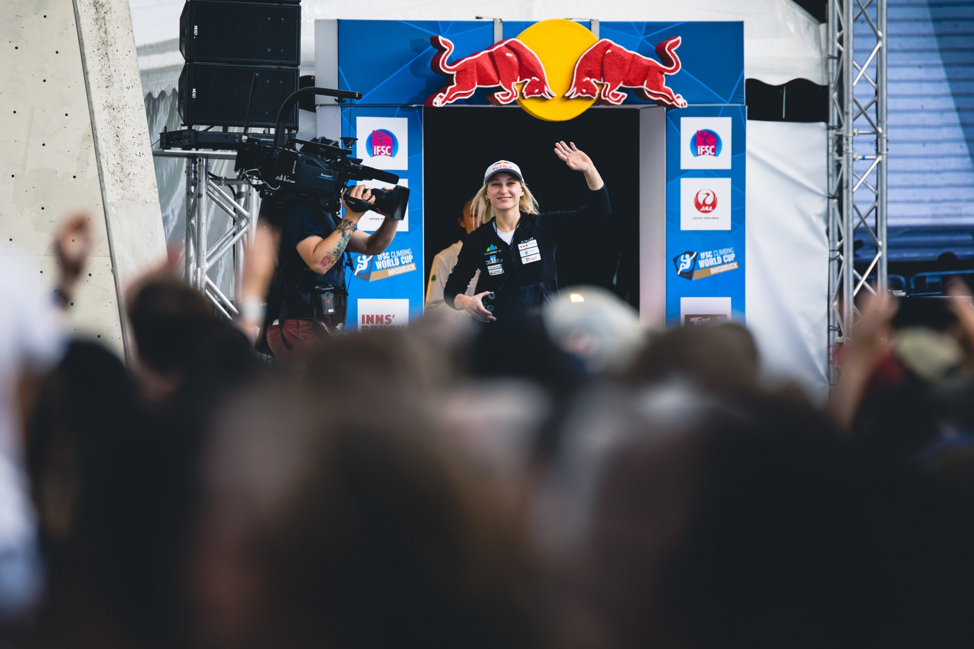 Olimpijska prvakinja Janja Garnbret je zbrano stopila pred zahtevno smer. S svojo neverjetno tehniko je navduševala gledalce ter premagovala eno težavo za drugo. Četudi nobena od plezalk ni dosegla vrha, je bila Janja z 39+ osvojenimi oprimki daleč najboljša. To je bila 39. zmaga v svetovnem pokalu za 24-letno Korošico.