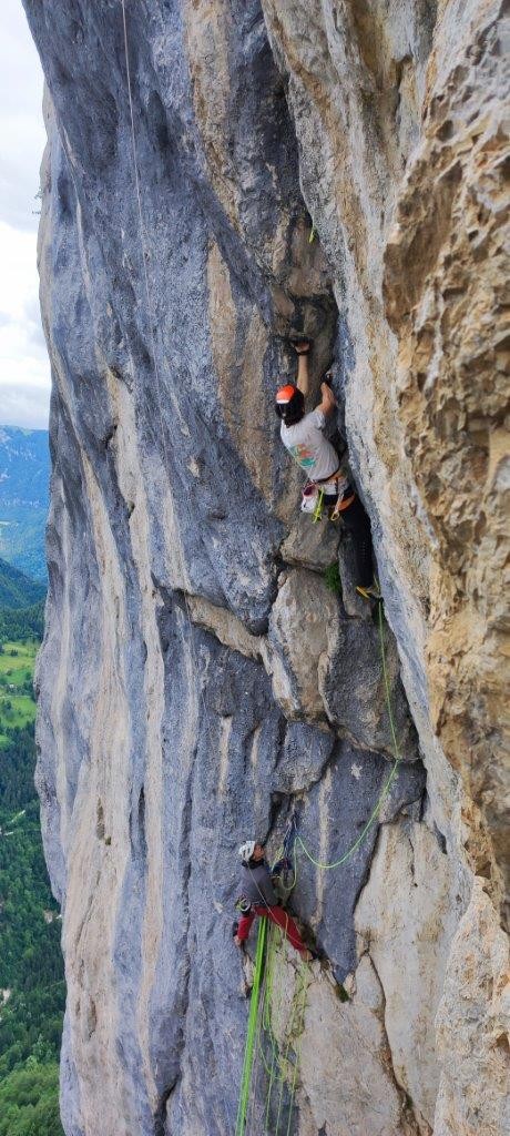 - Resnikova smer, VI/V, 350, Glavna stena, Miha Gašperin, Alina Ledinek