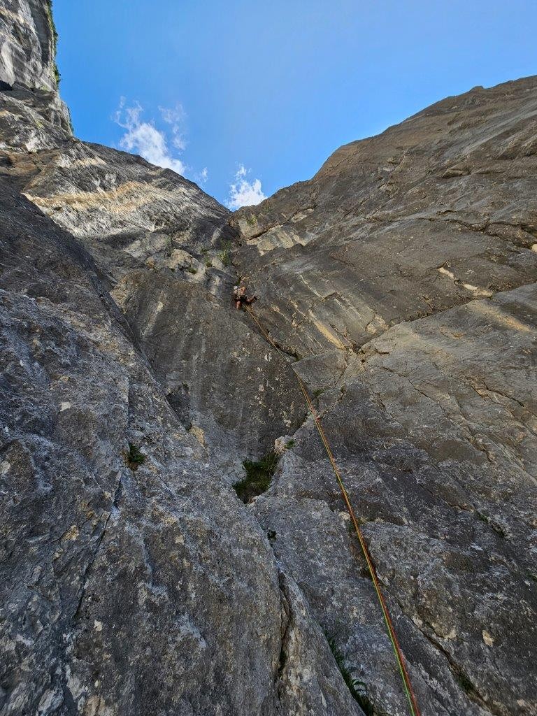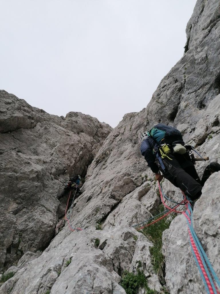 Prvi dan sta dve navezi poskušali v Predostenju, ampak ju je popoldansko grmenje in kasnejše plohe prepodilo v dolino, kjer smo počakali še ostale. Ob prvi gurmanski večerji ter še malo sramežljivih obrazov se zmenimo za naslednji dan.