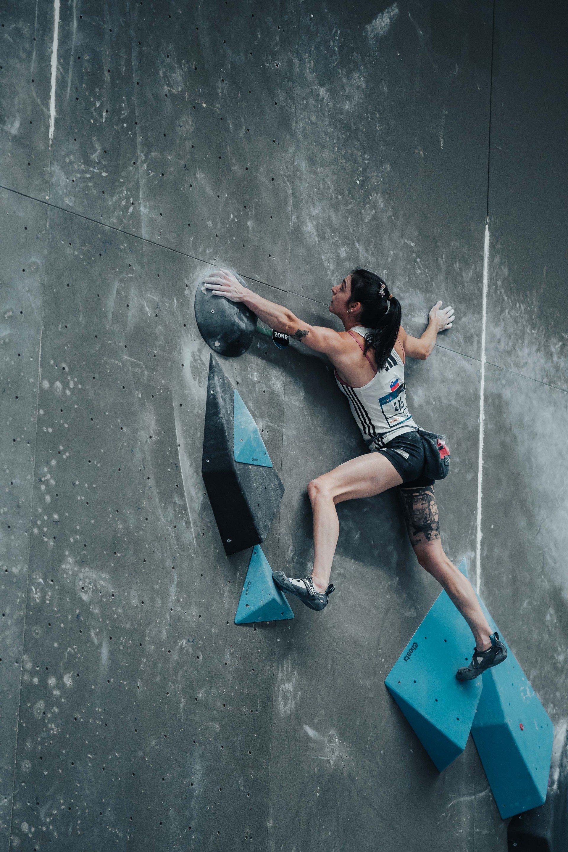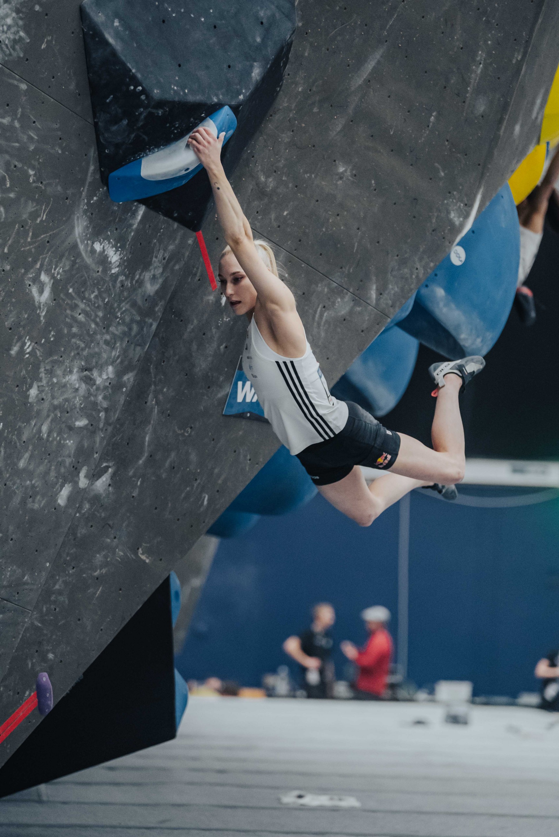 (foto Jan Virt/IFSC)Mesto med 20 najboljših balvanistk, ki se bodo pomerile v polfinalu balvanov, so skušale ujeti tudi Mia Krampl, Vita Lukan, Katja Debevec in Julija Kruder. Med temi se je v naslednji krog uvrstila Kruderjeva, s 13. dosežkom kvalifikacij. Celjanka, ki nastopa zgolj v balvanskem plezanju, je rešila dva balvanska problema od petih, ob tem pa še dosegla dve coni v prvem poskusu.