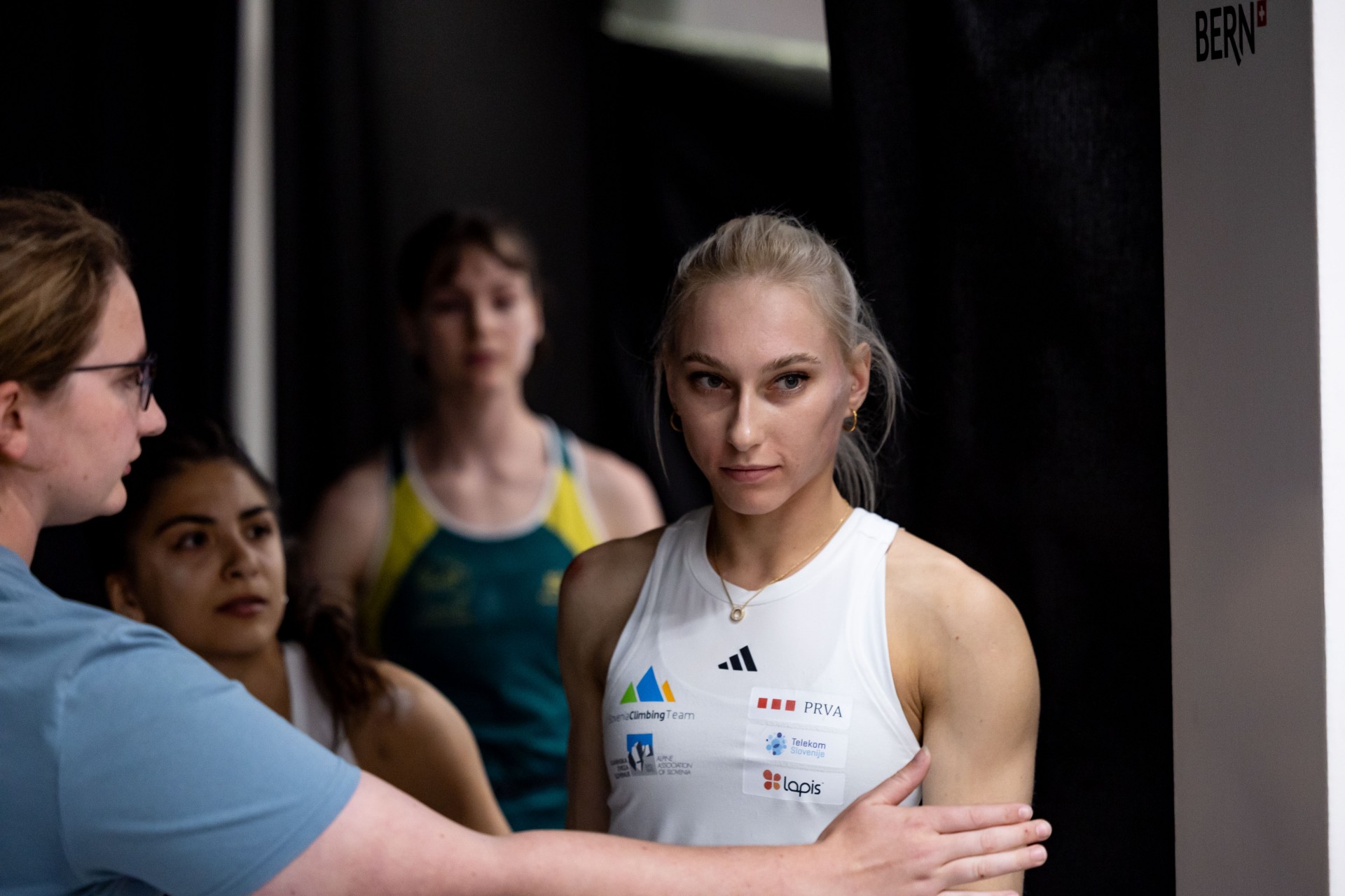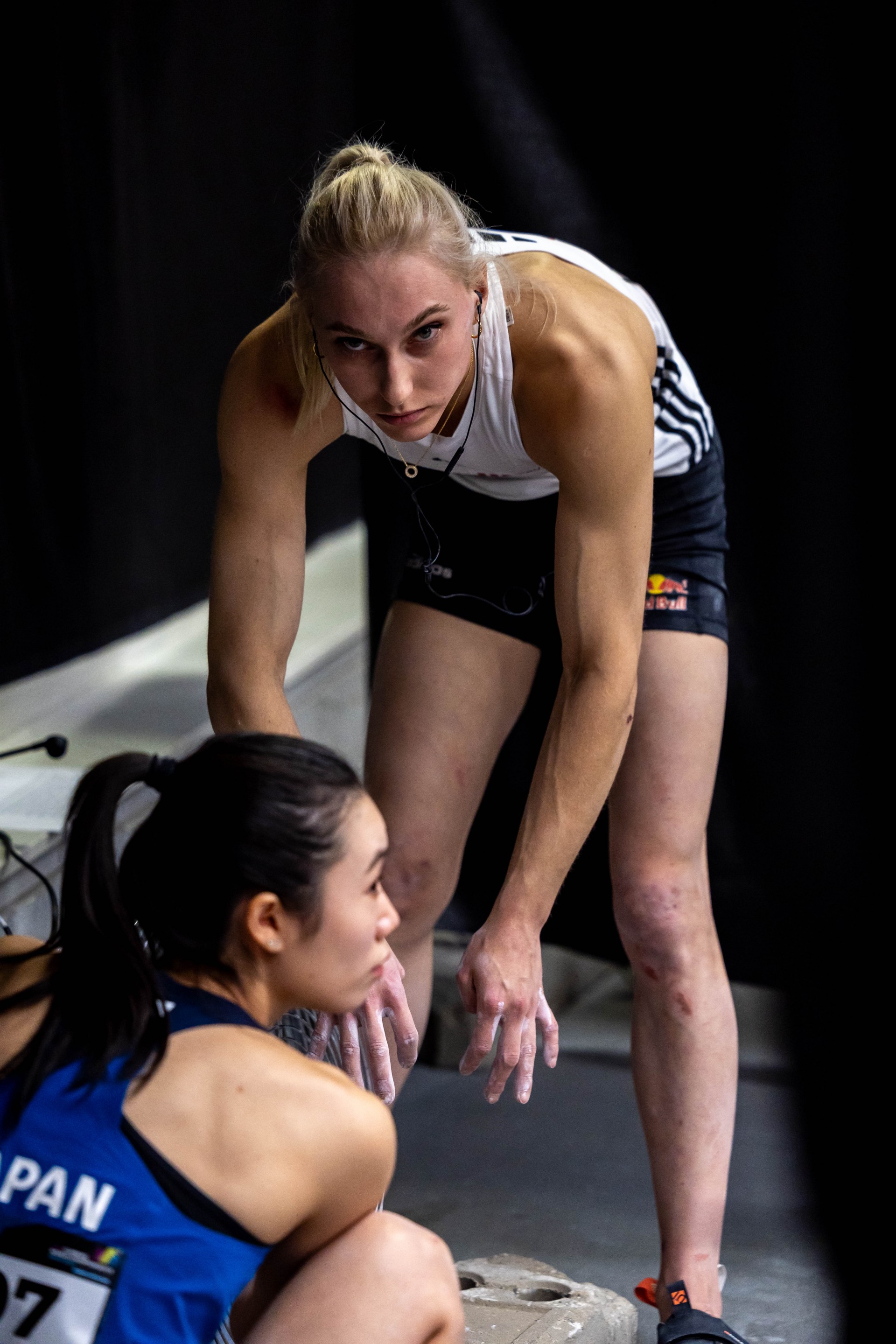 Popoldne so bile na sporedu še ženske kvalifikacije na balvanih z Janjo Garnbret, Mio Krampl, Vito Lukan, Katjo Debevec in Julijo Kruder. Olimpijska prvakinja Janja Garnbret je z odliko opravila kvalifikacije v balvanskem plezanju. Rešila je vseh pet balvanskih problemov, v treh balvanih se je na njihove vrhove zavihtela v prvem poskusu. "Na ogrevanju je bilo prisotne nekaj nervoze, torej v izolacijski coni, ampak po tem, ko sem pa stopila ven pred prvi balvan, sem pozabila na vse, na vso to tremo, in sem res samo še uživala v plezanju, pa na vsakem balvanu dala 'maks' iz sebe," je izjavila Korošica po koncu tekme.
