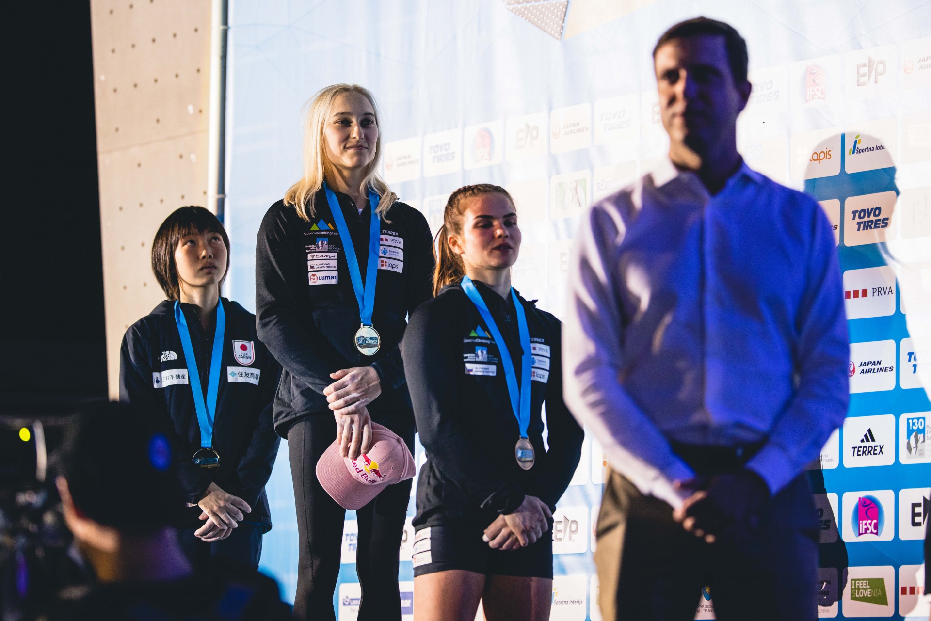 Srebrna Ai Mori, zlata Janja Garnbret in bronasta Vita Lukan (foto Grega Valančič)