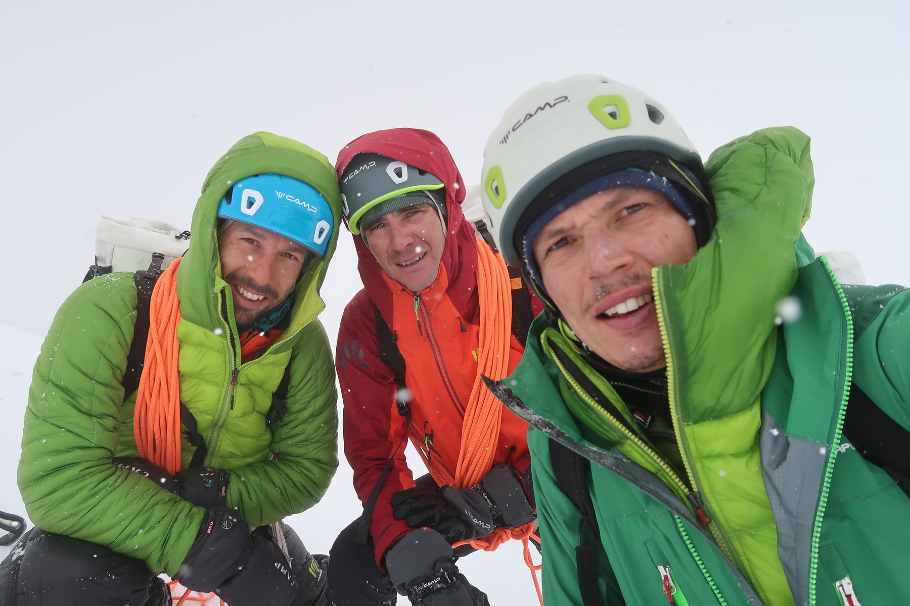 Luka Stražar, Nejc Marčič in Martin Žumer na vrhu kote 6050 m (foto Martin Žumer)