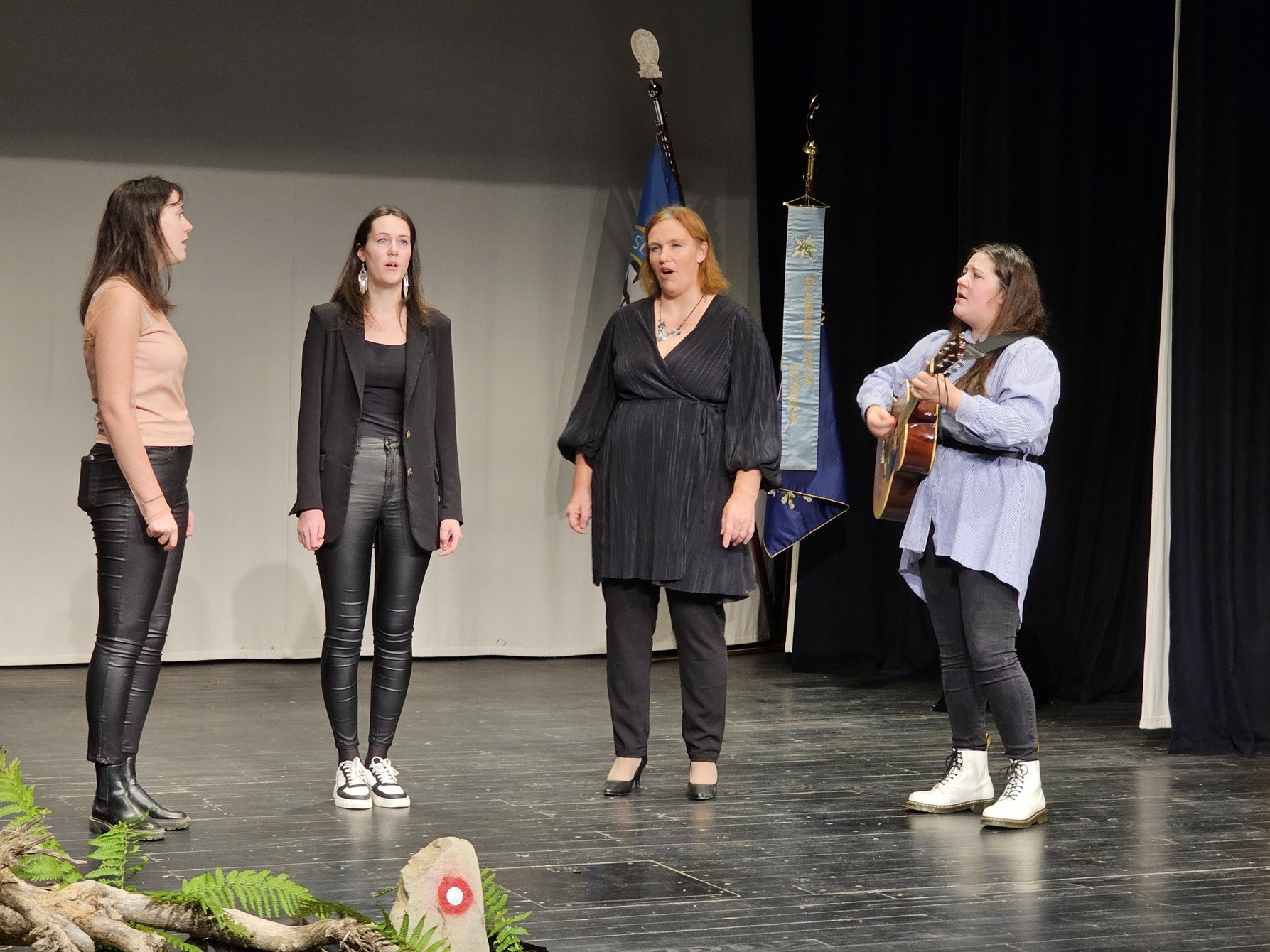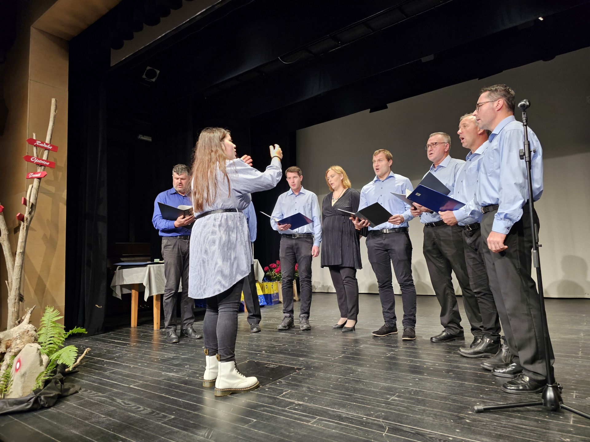 Podelitev najvišjih priznanj PZS za leto 2023 sta na Ljubnem s planinsko pesmijo obogatila Moški pevski zbor Zarja in Kvartet Štiglic (foto Manca Ogrin)
