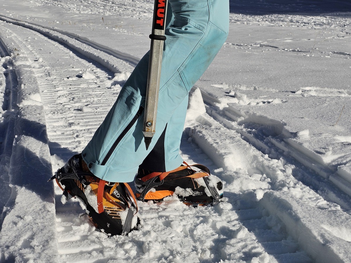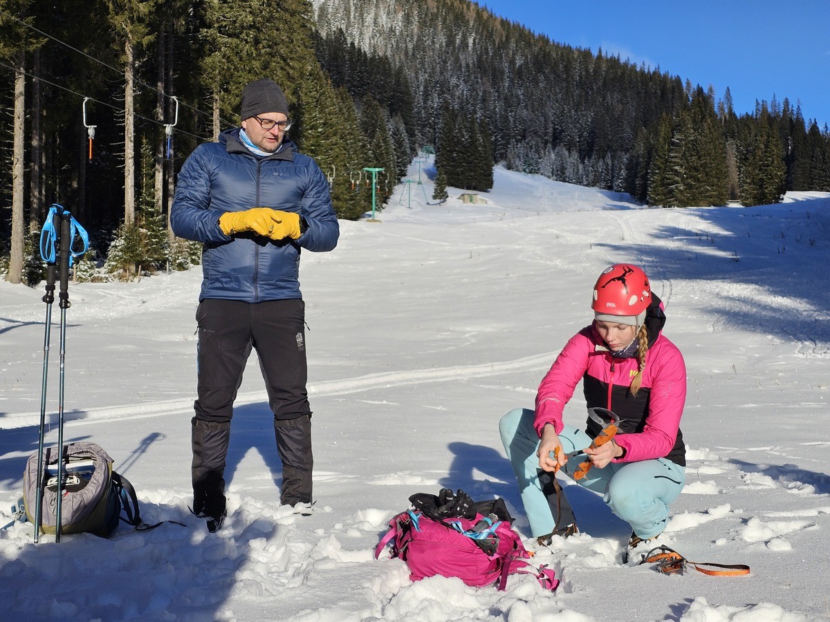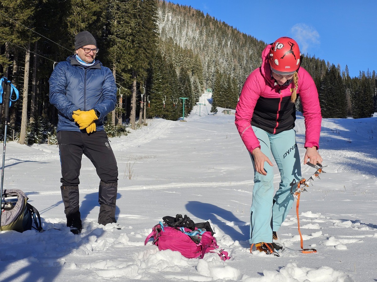 • Pred začetkom sezone vadite hojo z derezami, pravilno uporabo cepina in zaustavljanje s cepinom na pobočju z varnim iztekom.