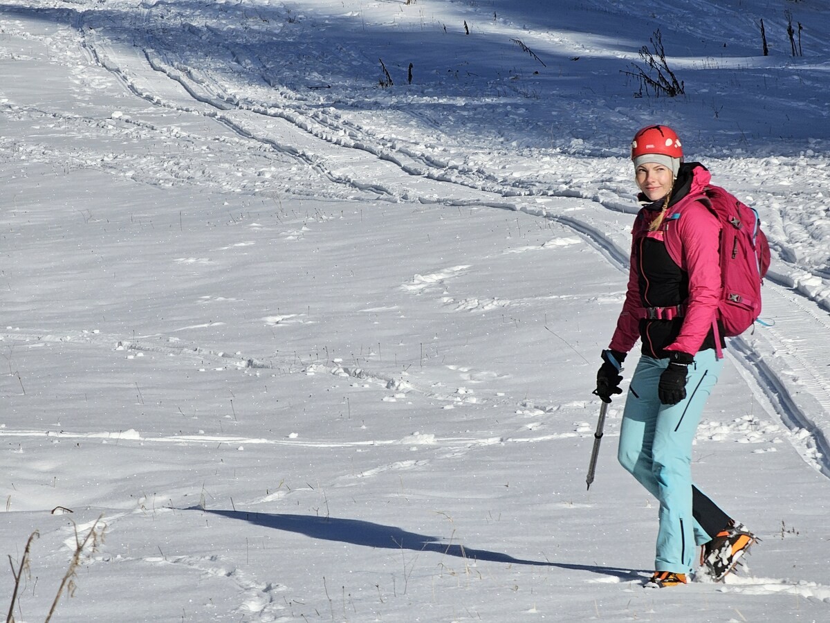 Spoštljivo in odgovorno pozimi v gore peš in na turnih smučeh. V turno smučanje nas vpelje tudi nov in sodoben priročnik Toneta Golnarja Turno smučanje. (foto Manca Ogrin)