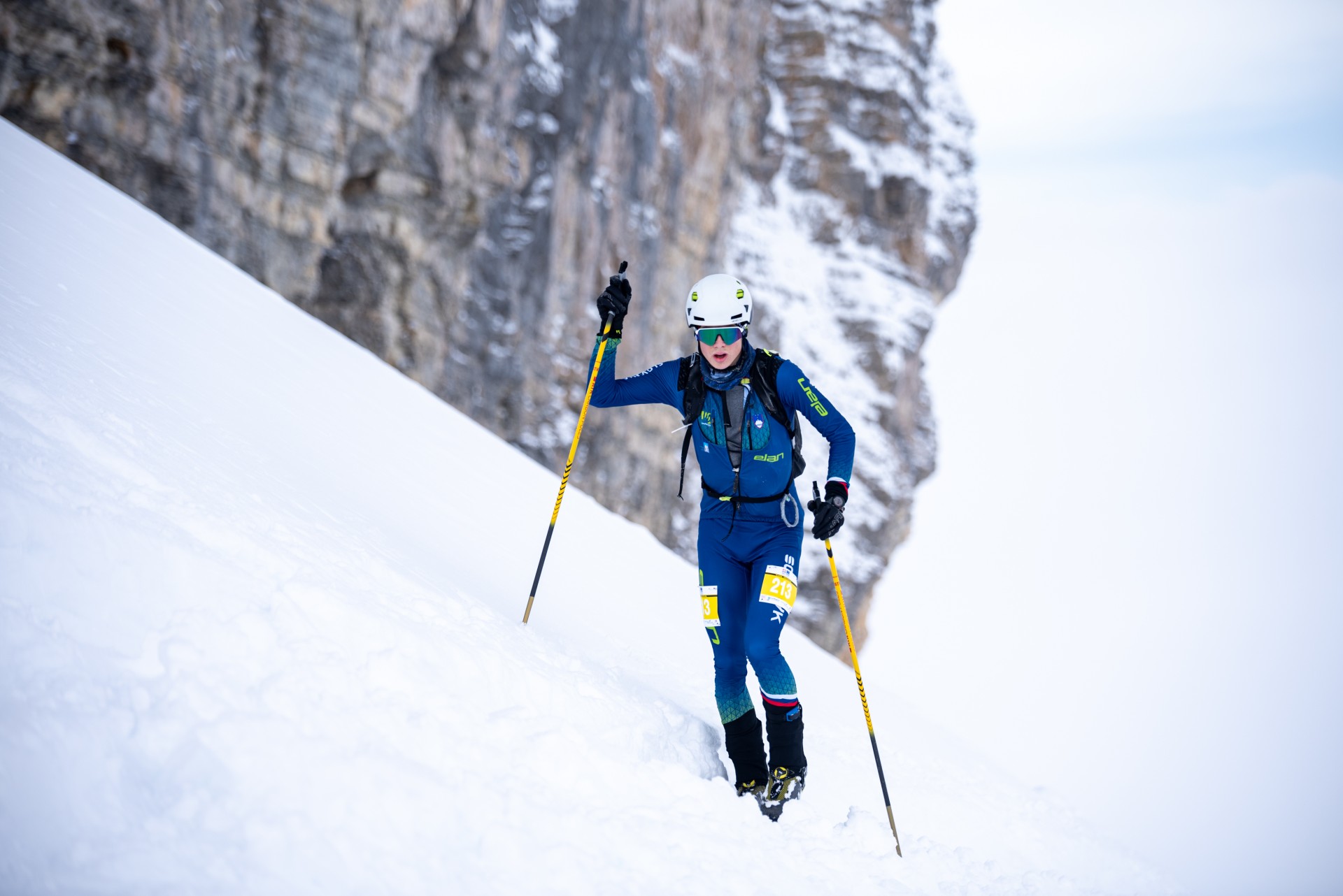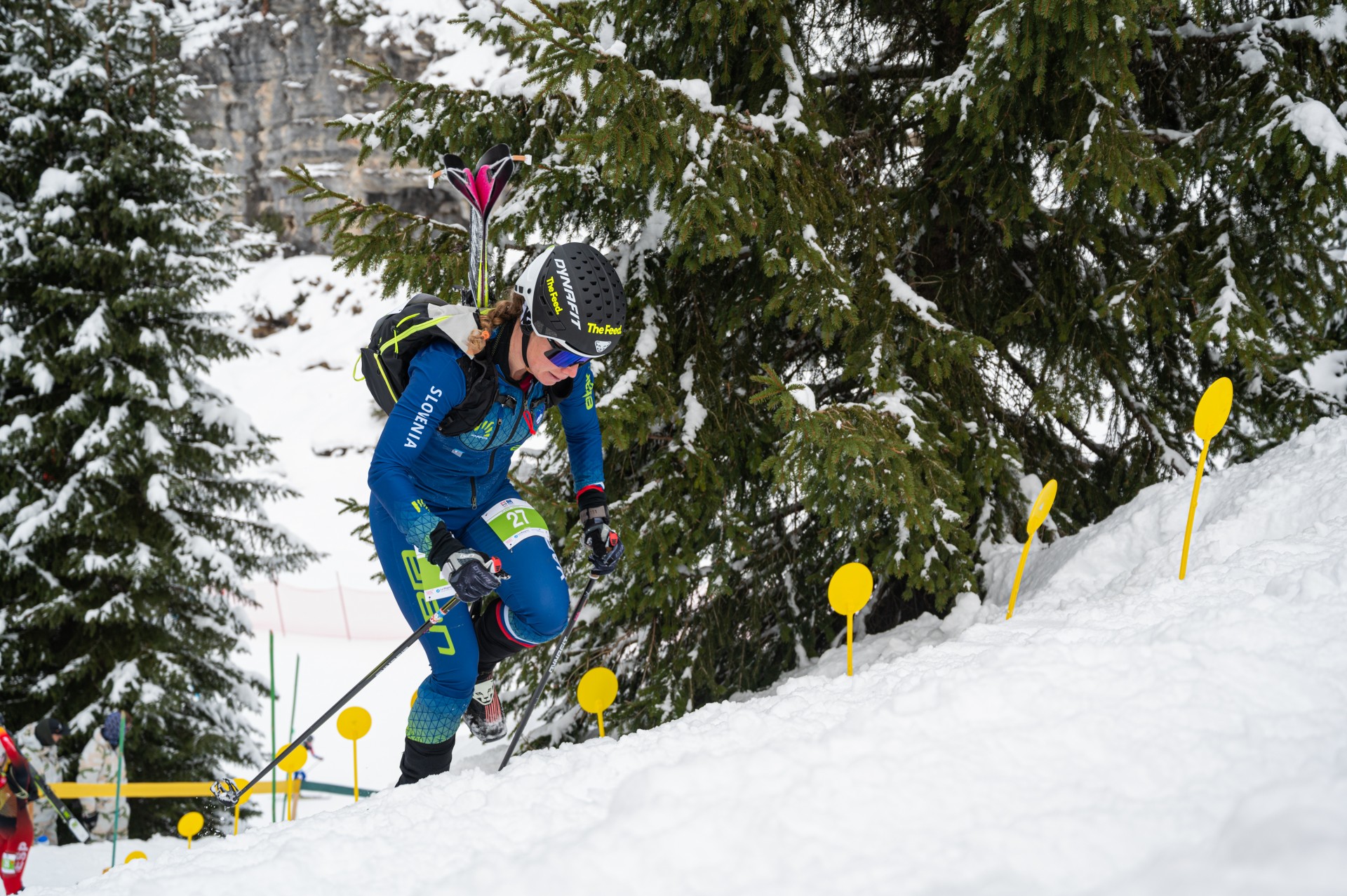 Mladinsko srebro kadetinje Klare Velepec v vzponu na EP 2024 v tekmovalnem turnem smučanju je prva medalja v turnem smučanju za Slovenijo (foto SkiMo Stats)