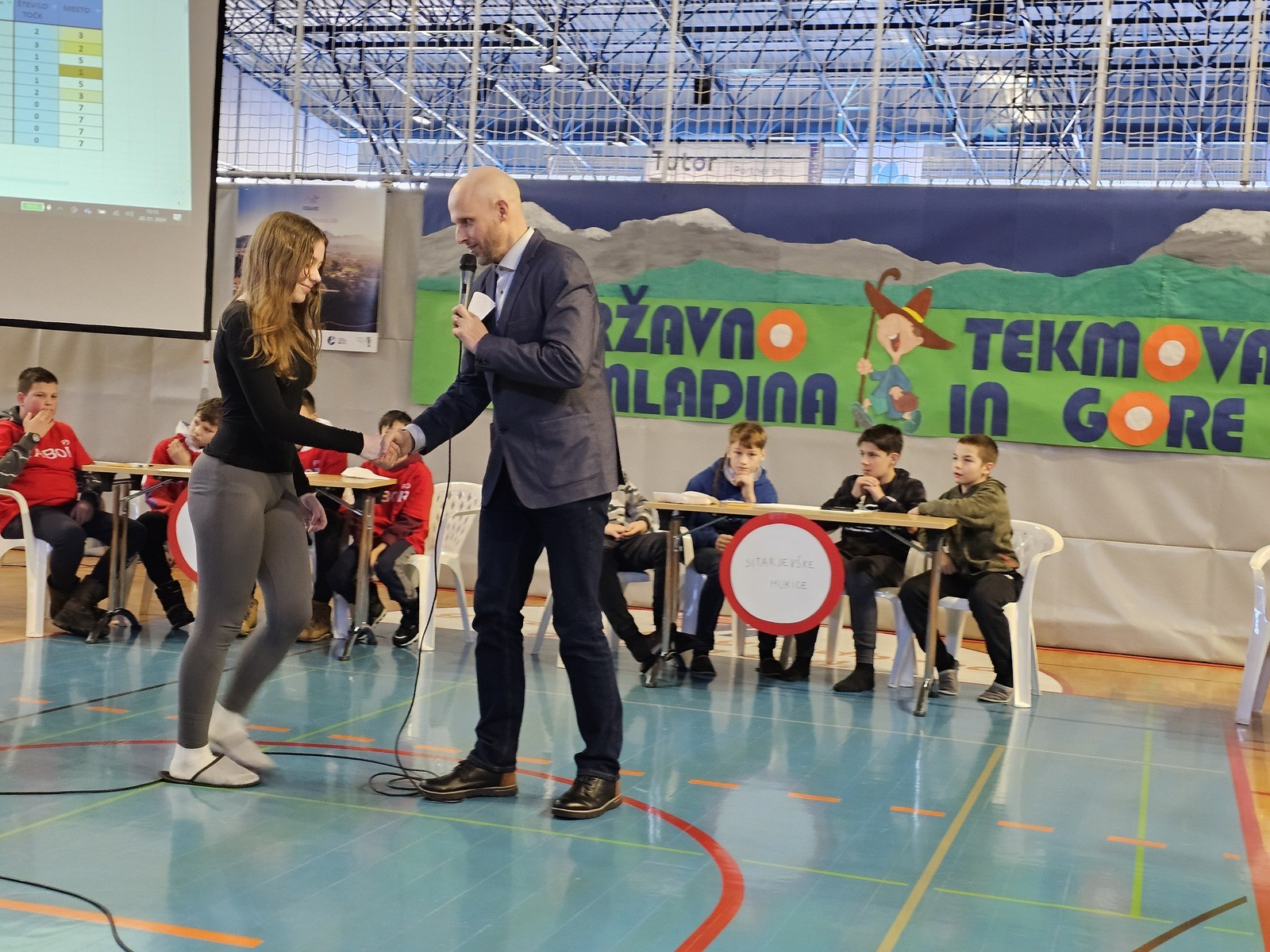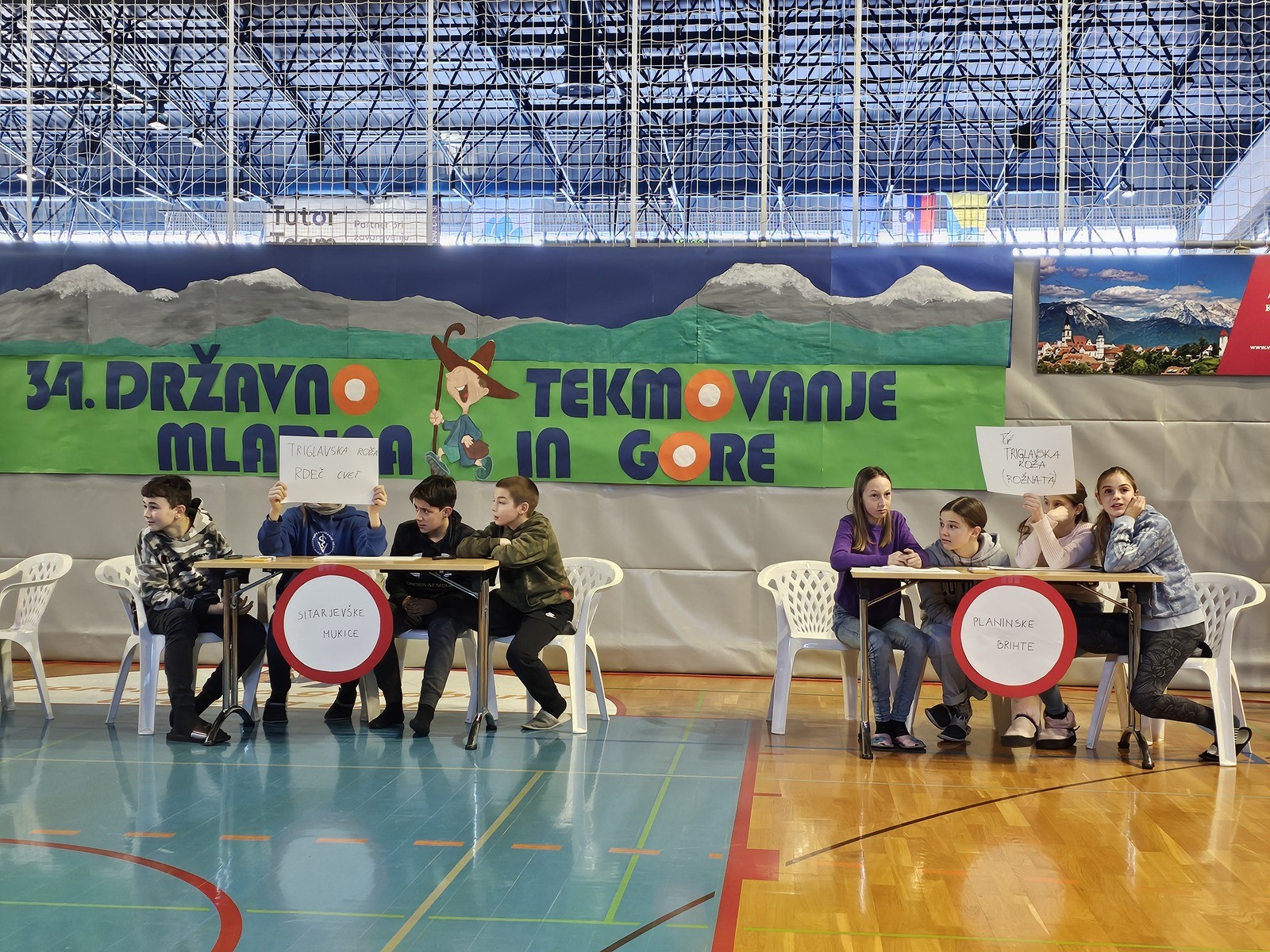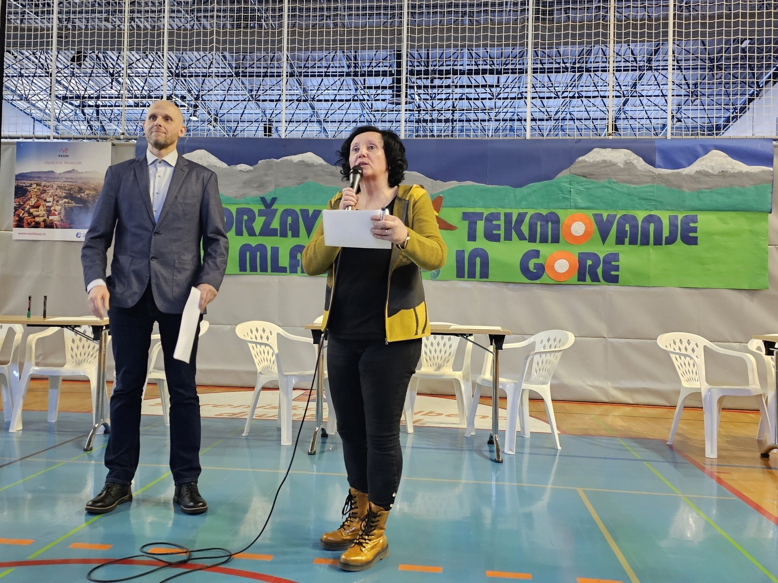 Za preganjanje treme pred začetkom tekmovanja so s pesmijo poskrbeli učenci OŠ Šenčur, ki so tudi sooblikovali planinsko kuliso v športni dvorani. Tekmovalce so spodbudno nagovorili podpredsednik Planinske zveze Slovenije