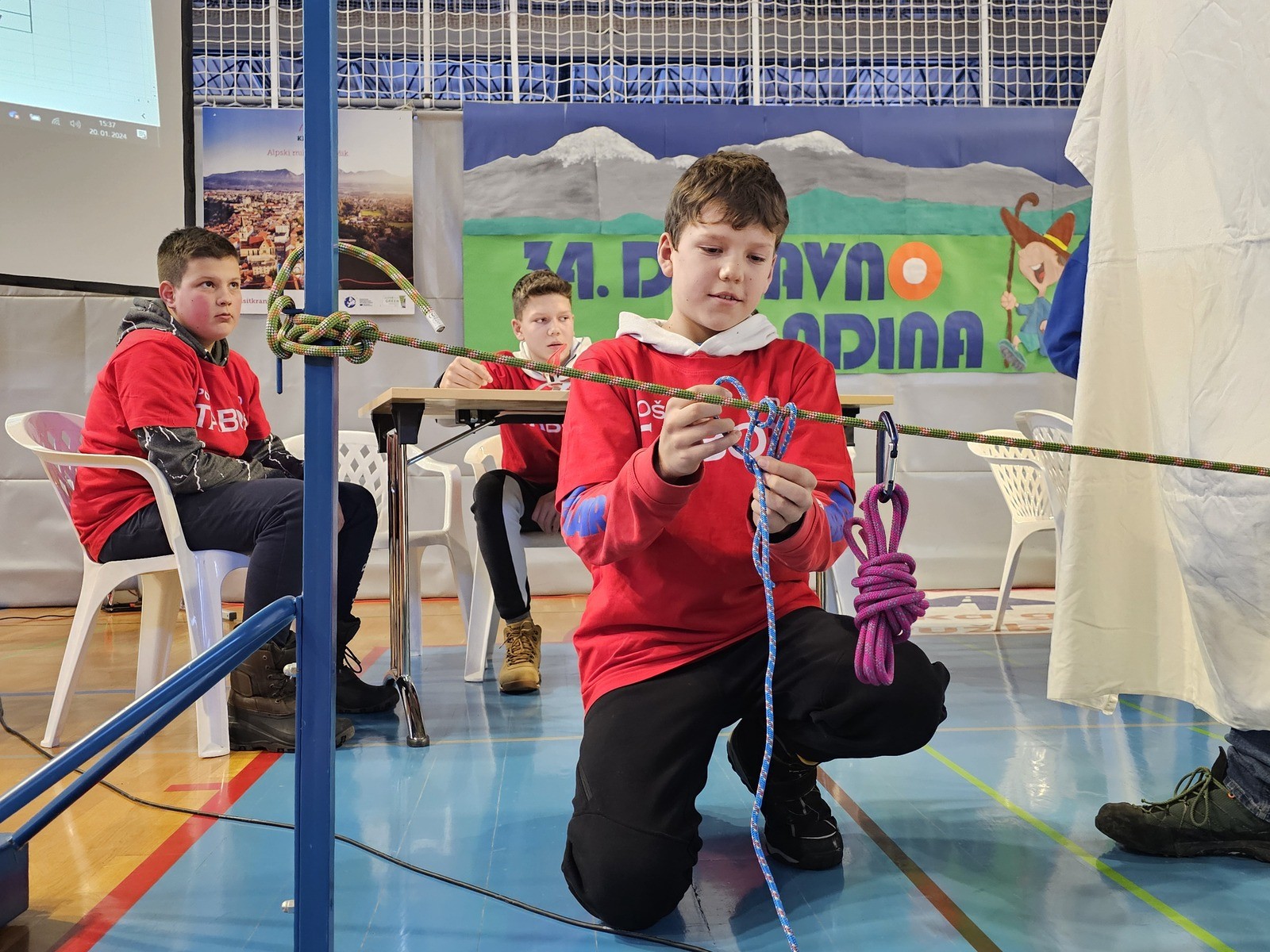Finalisti so se morali izkazati tako v teoretičnem planinskem znanju kot pri praktičnih nalogah iz planinskih vozlov in prve pomoči (foto Manca Ogrin)