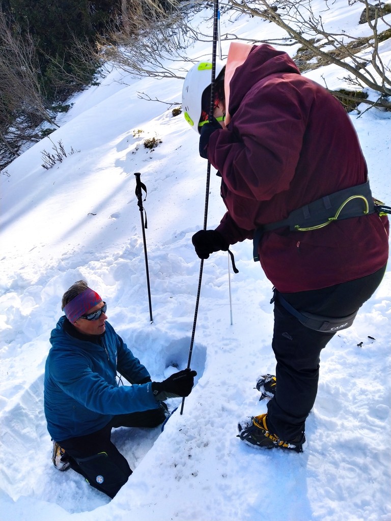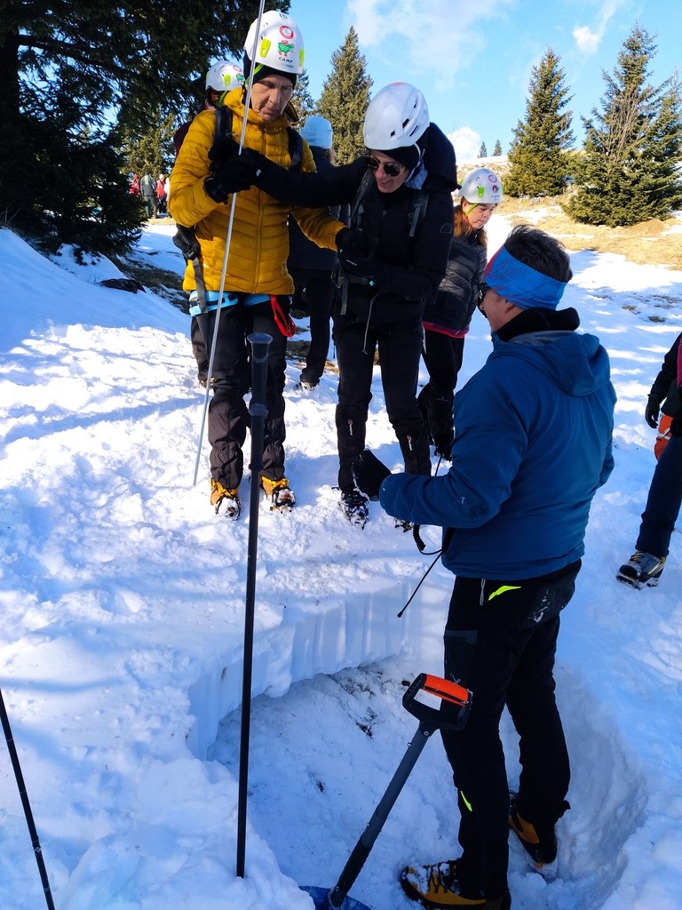 »Na prvi postaji so nam predstavili lavinske žolne, s katerimi iščemo ponesrečene pod plazom. Tudi sami smo lahko poskusili iskati s pomočjo spremljevalca, saj nam naprava na ekranu prikazuje metre in centimetre oddaljenosti od ponesrečenca. Na naslednji postaji smo spoznavali različne dereze, kako jih namestiti, kako jih uporabiti in predvsem, kako hoditi z njimi. Na malo strmejšem pobočju so nam prikazali, kako ravnati v primeru zdrsa, kako uporabiti cepin in kako se ob zdrsu na hitro obrniti v najbolj primeren položaj. Slepi smo se ulegli na sneg, saj nam je na ta način bilo najlažje predstaviti pravilen položaj in način uporabe cepina.