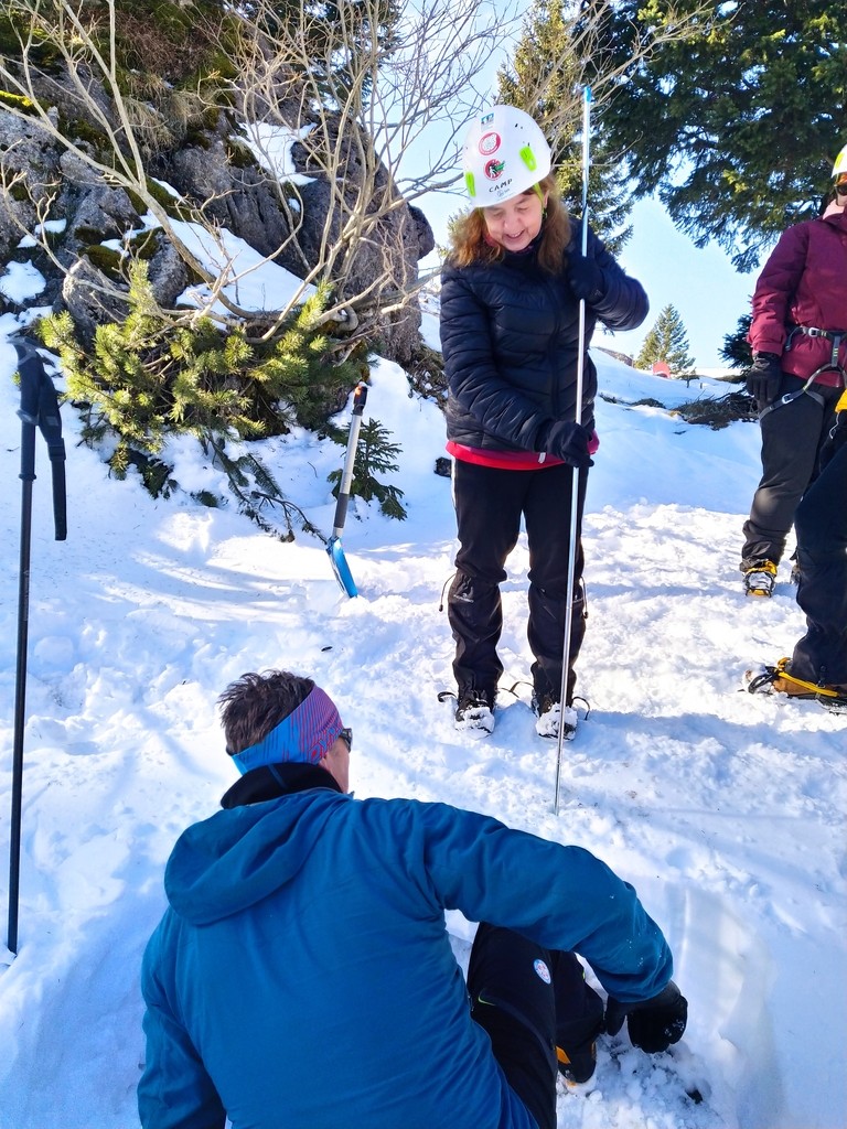 Na eni od postaj smo se naučili, kako s sondo preveriti, kje in kako pod plazom leži zasuta oseba in kako pravilno z lopato odmetavati sneg. Na lutki smo preizkusili metode oživljanja in uporabe defibrilatorja. Na koncu nam je Matjaž Šarkezi predstavil še plazovni nahrbtnik, iz katerega se v primeru plazu sproži zračni balon.«