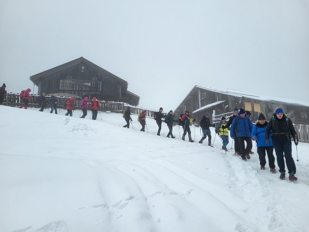 »Zadnji del poti je bil položnejši in prijetnejši za hojo, predvsem pa nas je na okrog 1250 metrih nadmorske višine razveselila snežna odeja, ki se je z vsakim nadaljnjim višinskim metrom malce odebelila,« se spominja Rok Janežič. »Ker smo najbolj zagnani pohodniki planinski dom na Kofcah na 1488 metrih nadmorske višine dosegli že pred deseto uro zjutraj, je Ludvik na hitro sklenil, da nas popelje še do križa, posvečenega župniku in pisatelju Janezu Jalnu. Do tja smo hodili še kakih 20 minut. Načrtovano nadaljevanje poti do Velikega vrha pa je zaradi snega odpadlo.«