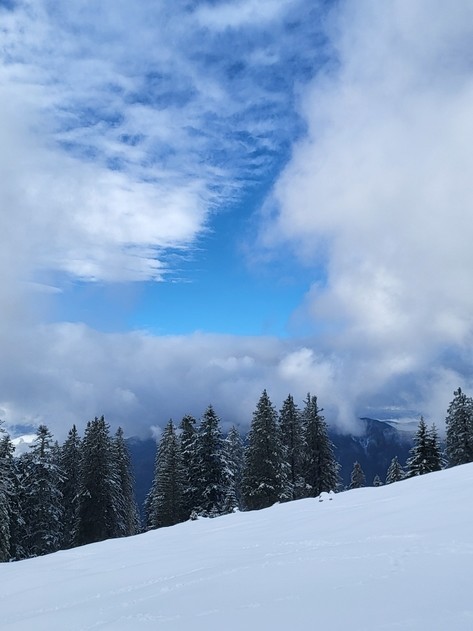 Zadnjo februarsko nedeljo, 25. februarja 2024, smo se inPlaninci podali na planino Kofce nad Tržičem. S kombijem smo se iz Ljubljane pripeljali do Matizovca, ki leži na 915 metrih nadmorske višine, štajerski del odprave pa se je na izhodišče pripeljal v nekaj osebnih avtomobilih. Pohod je vodil, kot že nekajkrat poprej, naš stalni spremljevalec, član PD Tržič Ludvik Veber. Na poti smo se sprehodili skozi najmanj dva letna časa - od zelene cvetoče pomladi v objem zime. Spremljali so nas sonce, megla, sneg, med vožnjo pa še dež in mavrica čez vse nebo.