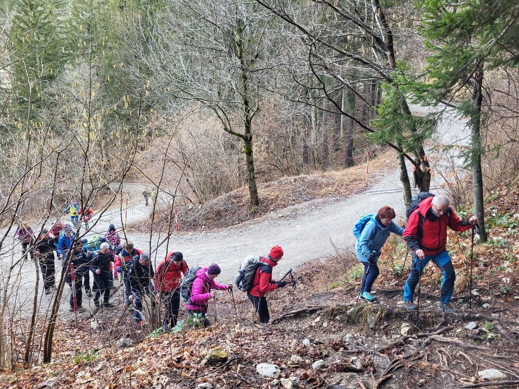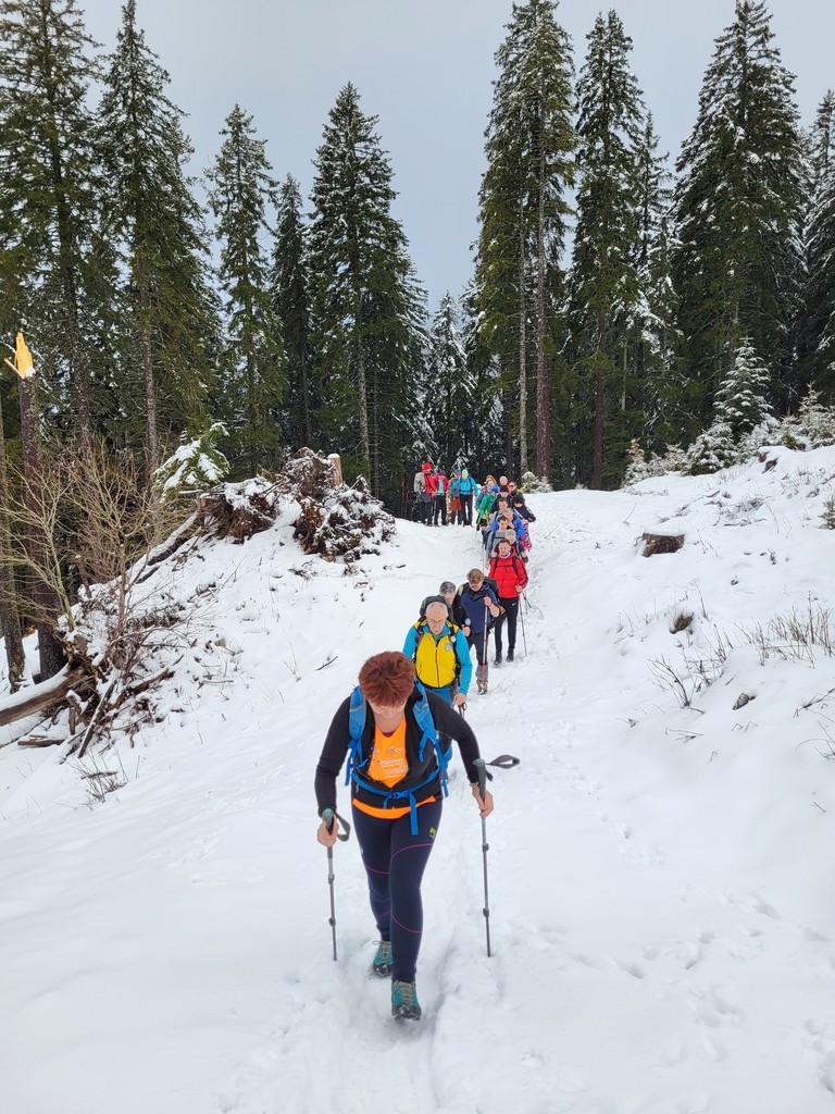 »Pri hoji mimo kmetije in žage se je pot začela vzpenjati. Moje misli na začetku so prepletene z dvomi. Bo šlo? Bom zmogla čez svoje omejitve? Vzpodbuda tokratne spremljevalke Marte me potisne za par metrov navzgor. Hitro se zadiham, ker se prehitro zaženem v hrib. Slišim jo, kako globoko vdihne skozi nos in izdihne skozi usta. Smešno se sliši, vendar kot že nič kolikokrat do sedaj tudi sama ponovim. To dihanje zahteva postanek. Seveda karavana pohodnikov hodi mimo, pred mano je že cela skupina, ostajava zadaj. Ni pomembno, pravi Marta. Saj vem, vem. Močno sem odločena, da premagam strm, s koreninami prepleten teren,« pripoveduje Nataša Privošnik.