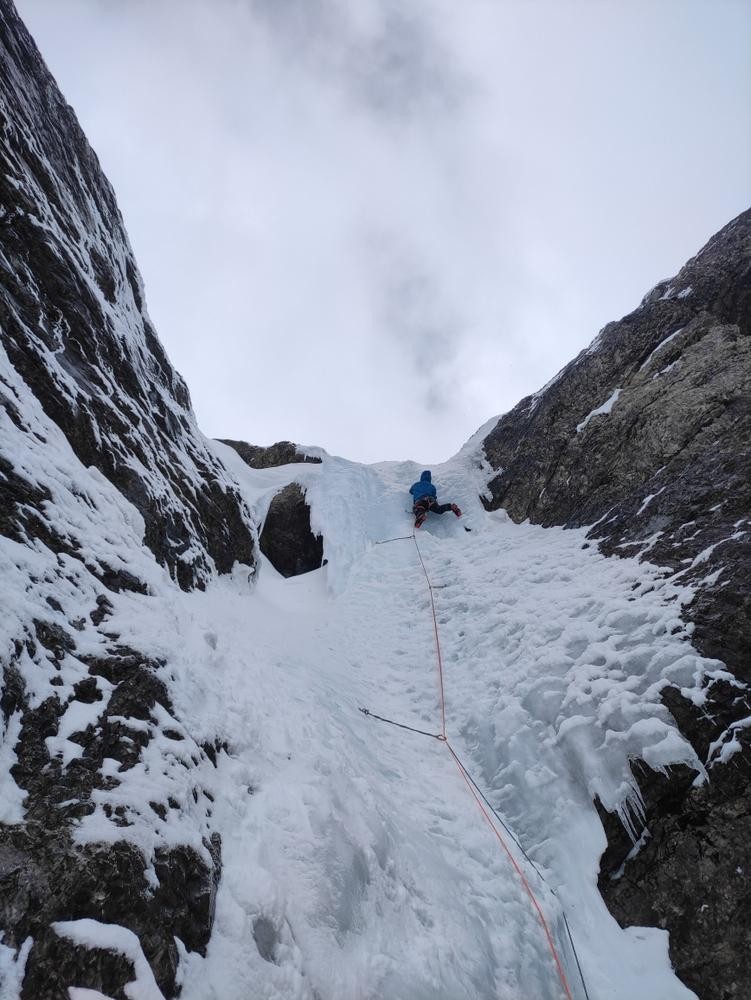 - krajši slap nad smučiščem Stubai, WI4-, Veronika in Martina Jakopič, Alina Ledinek