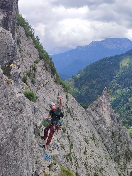 Zadnji dan je minil v bolj sproščenem tempu in krajših dostopov. Plezalo se je v Predostenju, Krofički, Klemenči peči in Logarski dolini. Na dostopu nas je osvežila ploha, ki pa se je k sreči hitro poslovila. Dan je potekal brez posebnosti in kmalu se še poslednjič zberemo vsi v koči, kjer skupaj zaključimo in naredimo kratko refleksijo vikenda.
