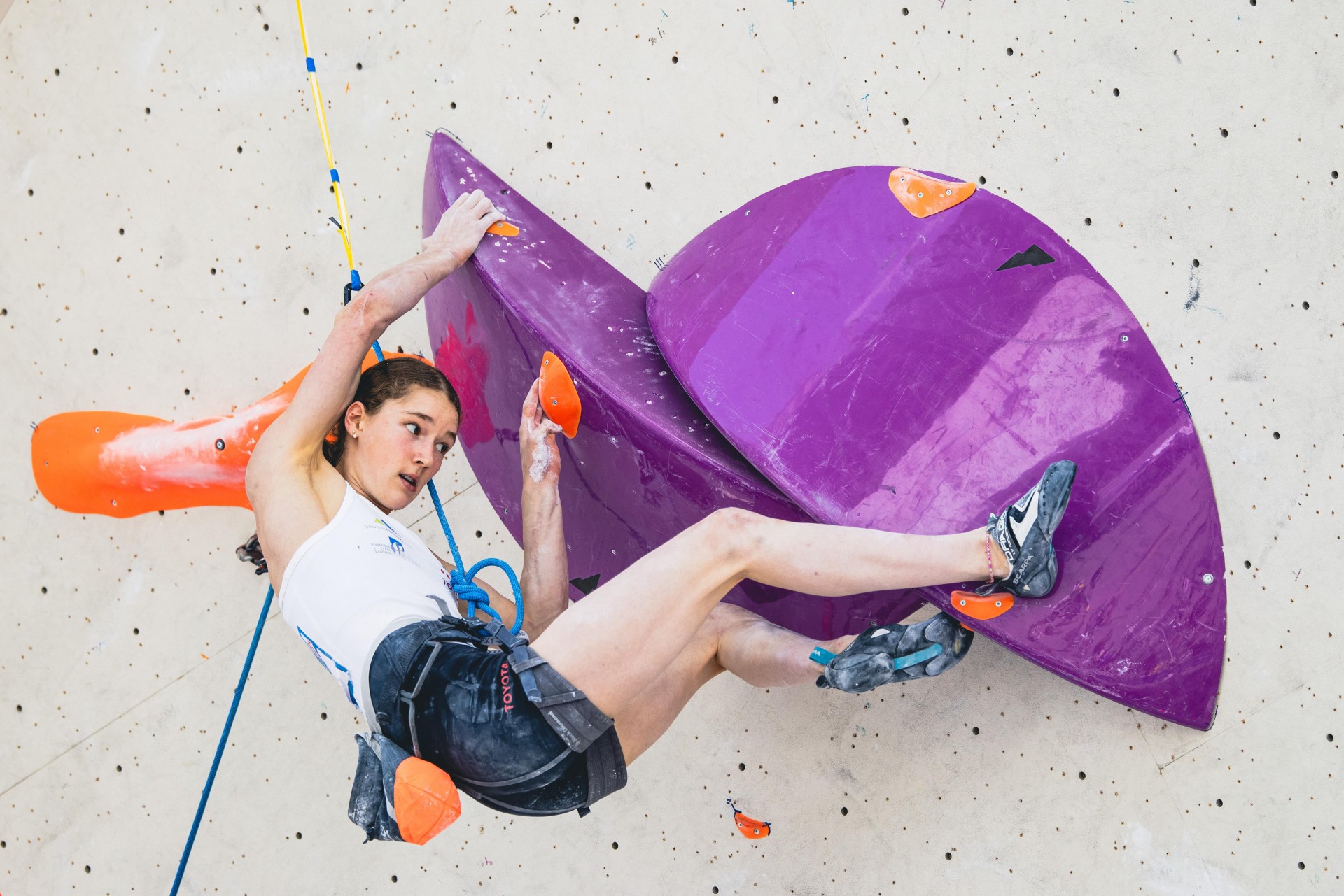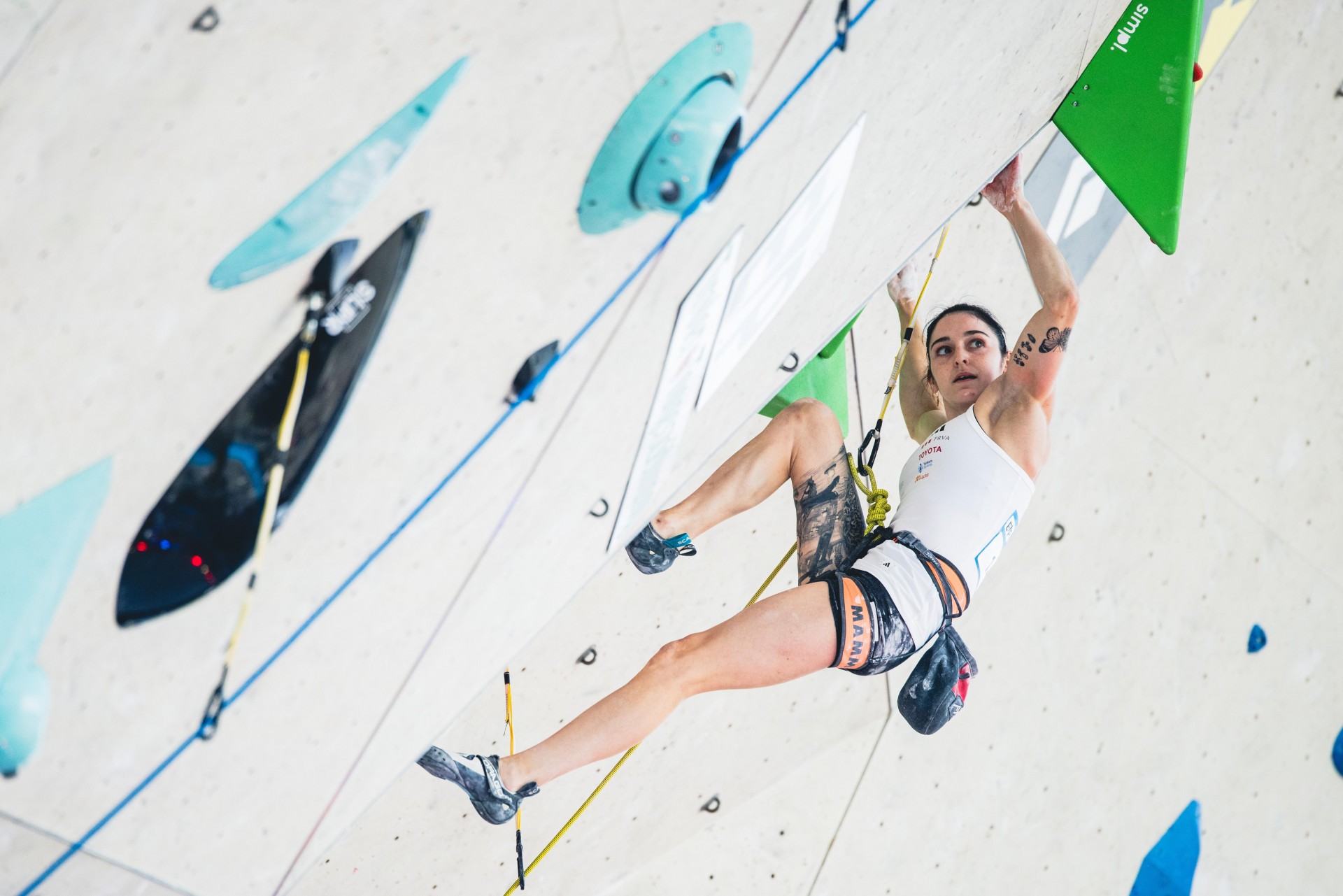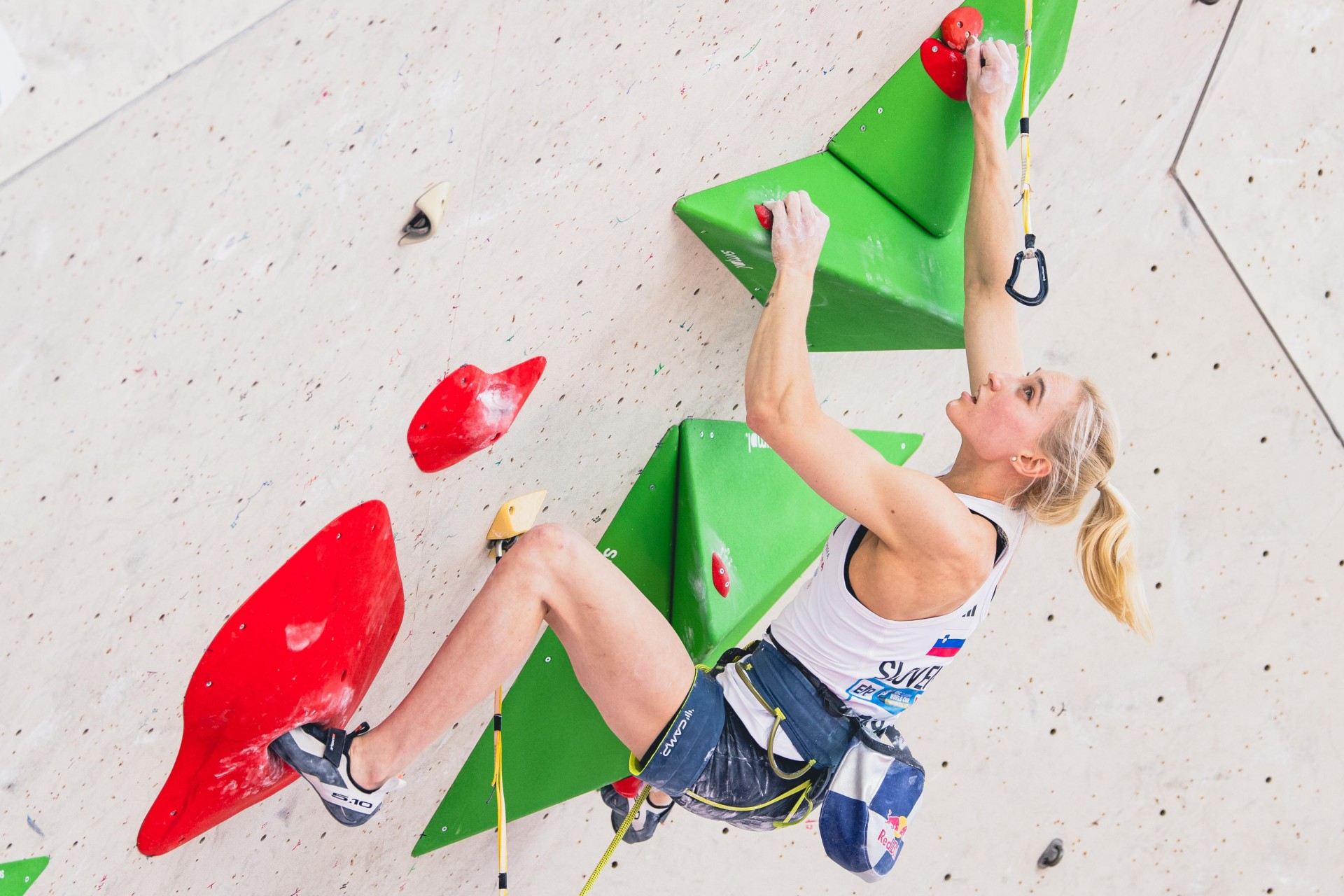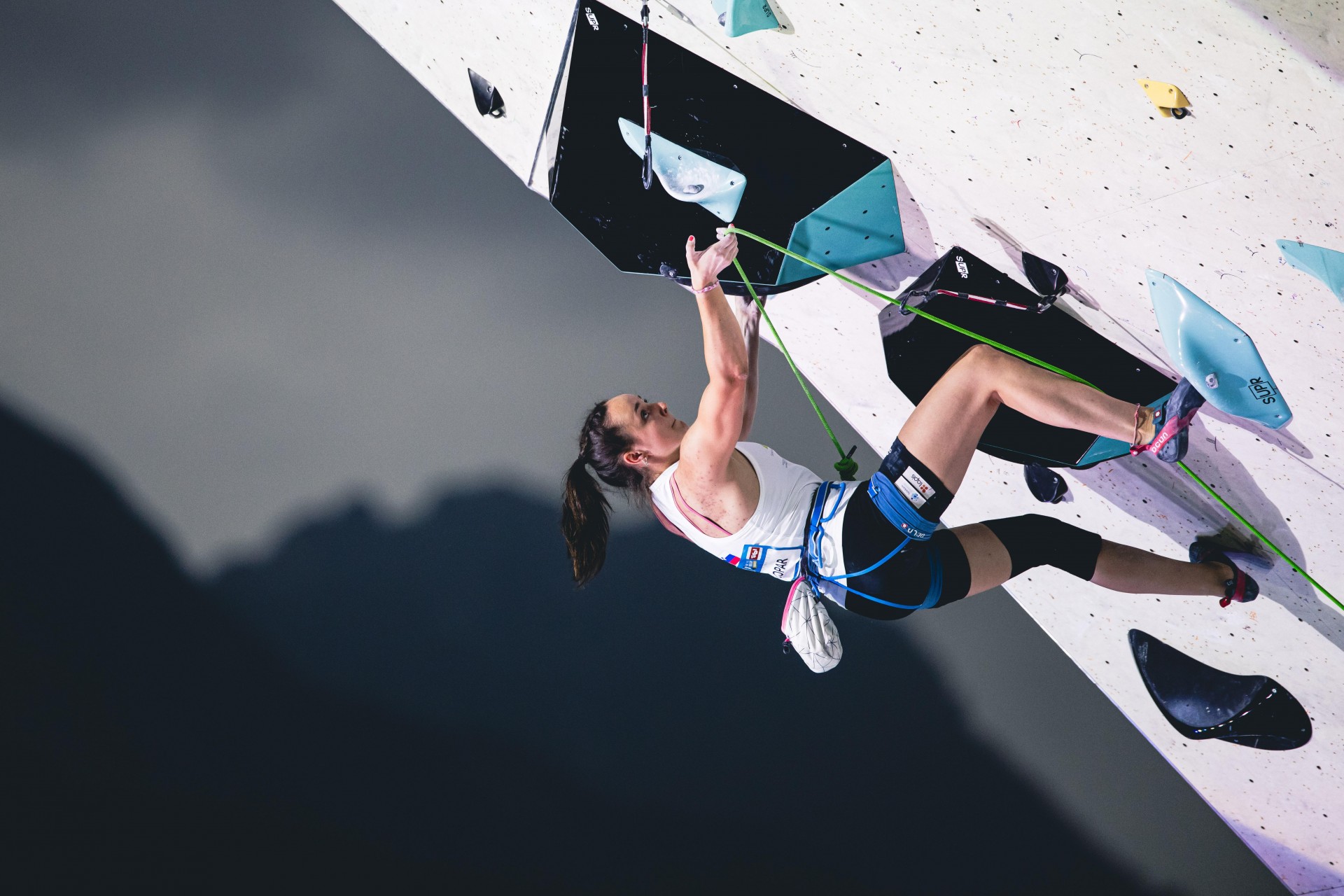 Druga najboljša Slovenka je bila Jennifer Buckley, ki se je uvrstila na 12. mesto v težavnosti, potem ko je dva večera prej z Janjo Garnbret stala na zmagovalnem odru v balvanskem plezanju (foto Grega Valančič)