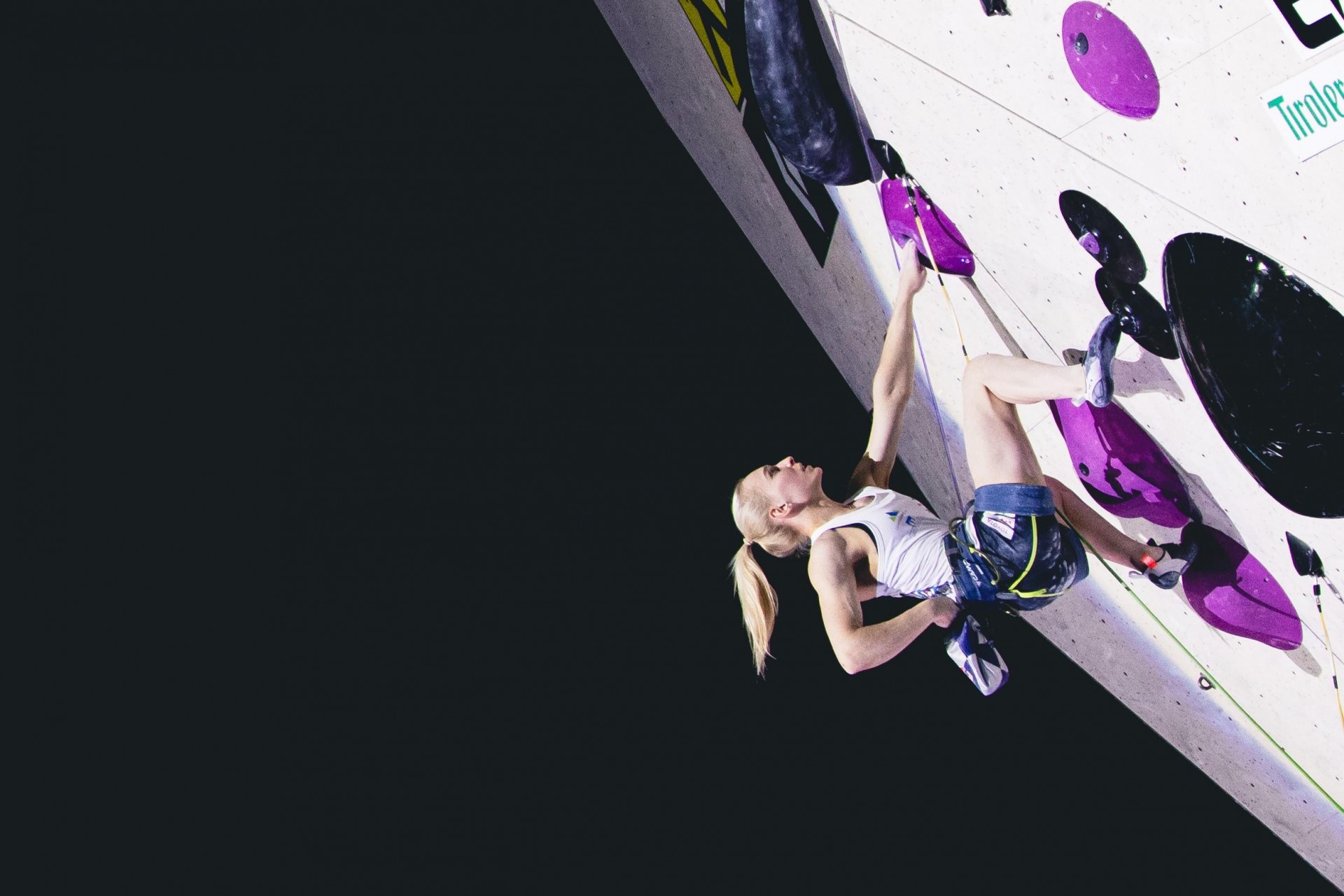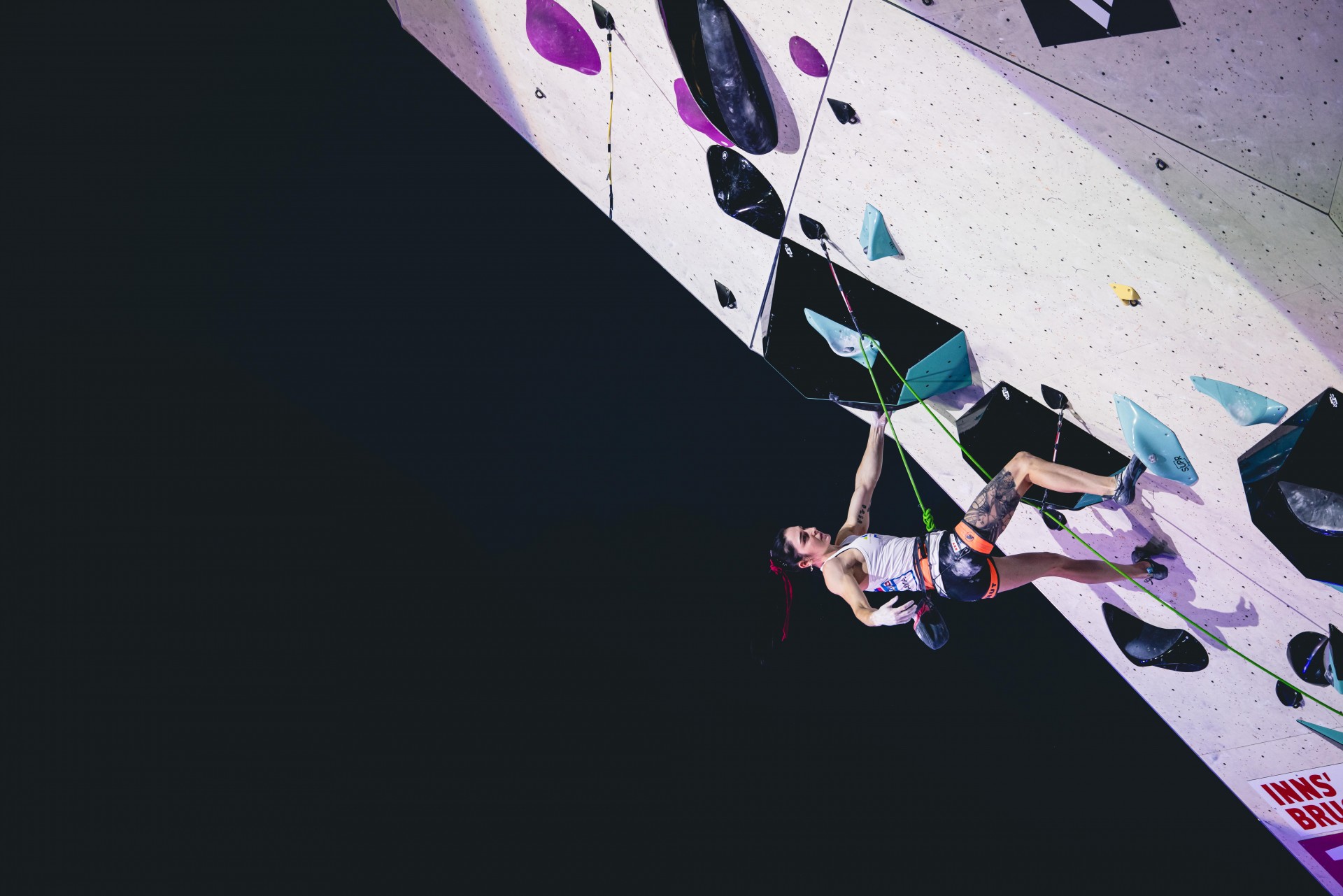 Janja Garnbret najboljša tako v kvalifikacijah kot v polfinalu tekme SP v težavnostnem plezanju v Innsbrucku (foto Grega Valančič)