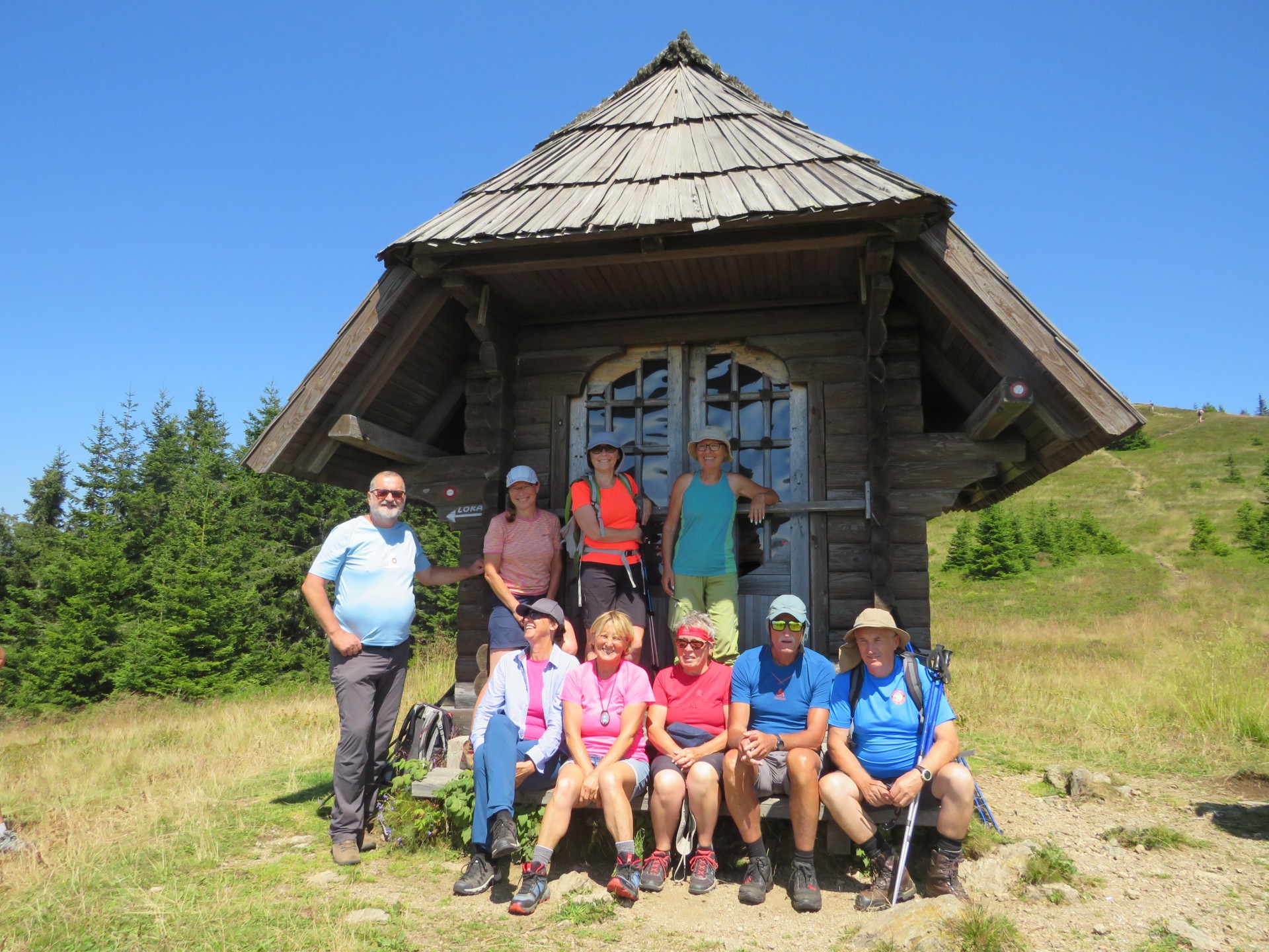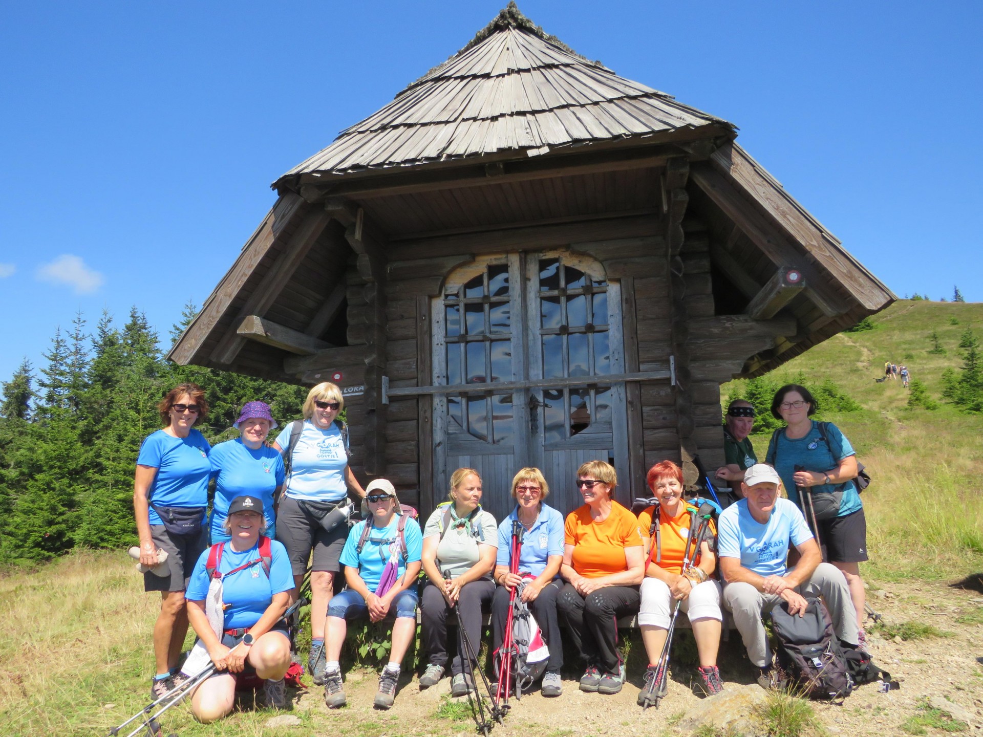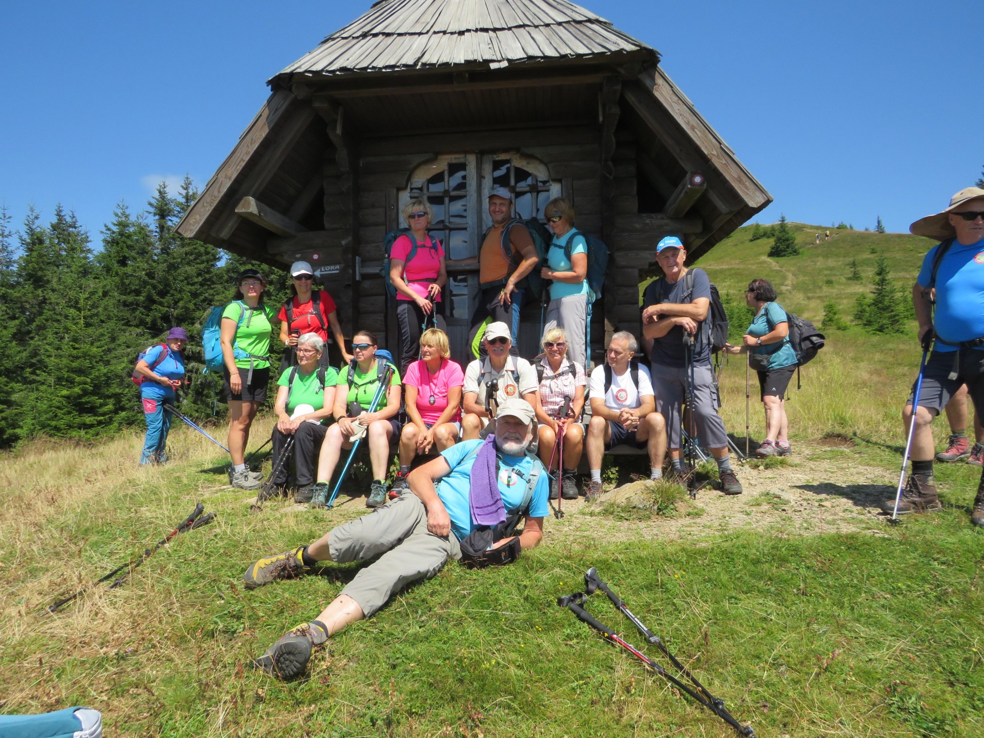 S Komna smo se spustili na prelaz Hlipovec, nato je sledil rahel vzpon na Veliki Travnik, ki ga domačini po večini imenujejo Turnovka. Krasita ga lep lesen razgledni stolp in visoko barje, ki je naravna vrednota lokalnega pomena. S Turnovke smo se podali do koče na Travniku, kjer so nam dežurni planinci PD Ljubno ob Savinji pripravili prisrčno dobrodošlico z obaro in s palačinkami. Po počitku in klepetu smo sestopili do Suhe rampe, kjer smo se vkrcali v vozila in se vrnili v dolino.