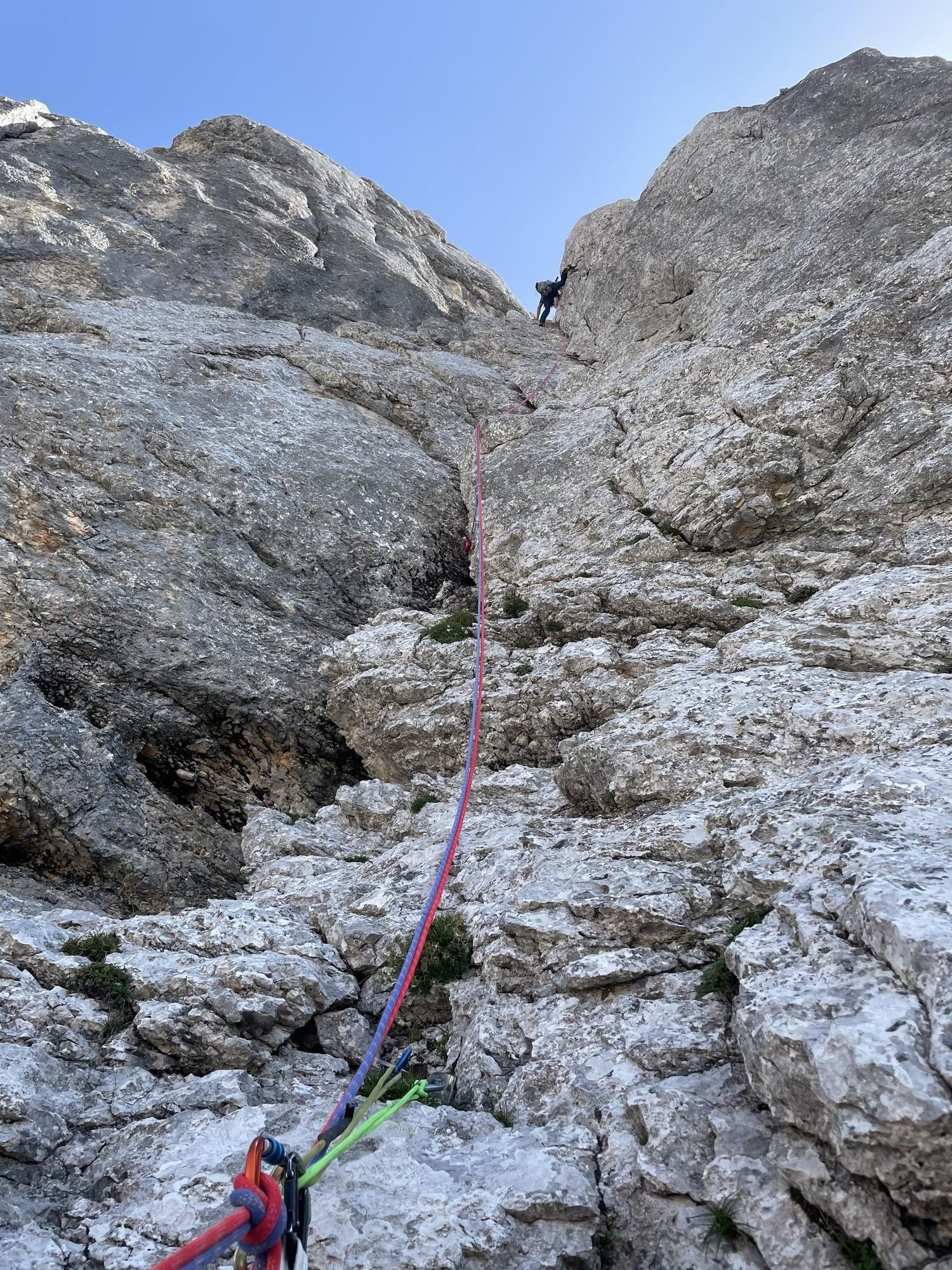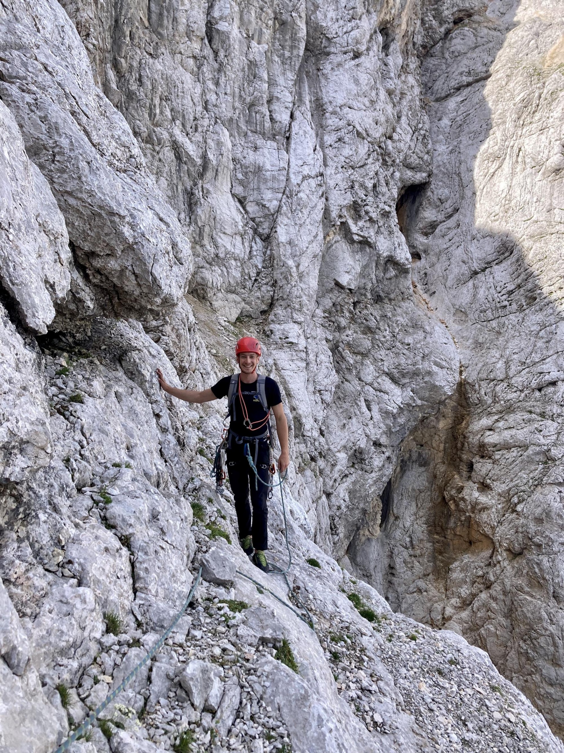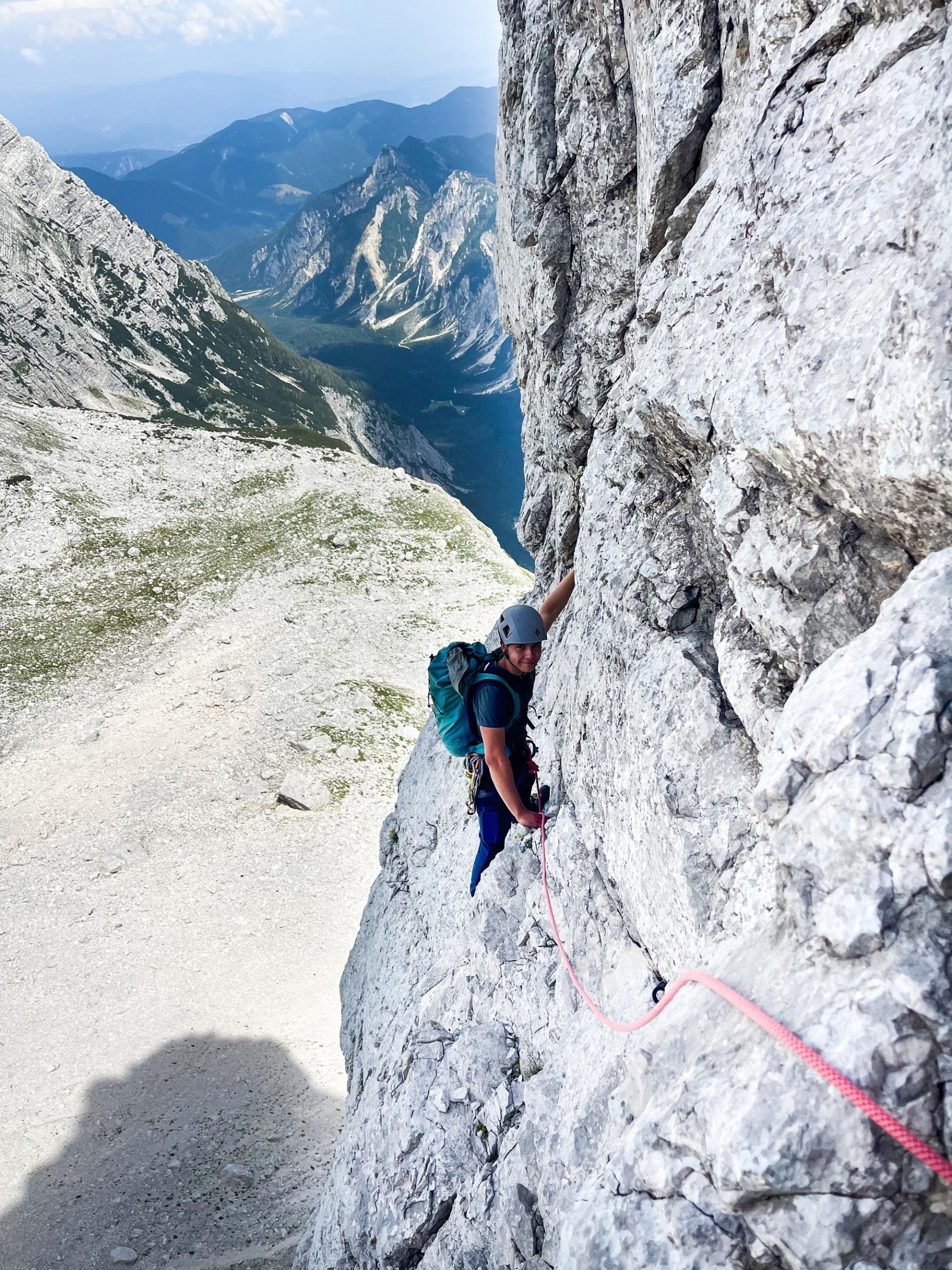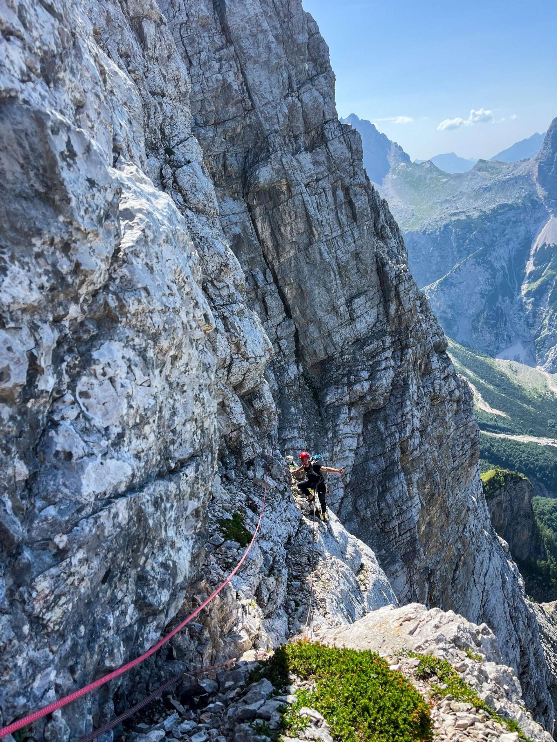 - Dominik Cyran: In August, I had a pleasure to participate in a camp organized by Slovenian Alpine Association. It was an amazing experience of climbing in Julian Alps and roping up with locals there. I've learned a lot about the demanding protection in limestone, complex route-finding and heard stories about the unique system of becoming an alpinist in Slovenia. Besides that, we experienced incredible weather and magnificent views in the Julian Alps.