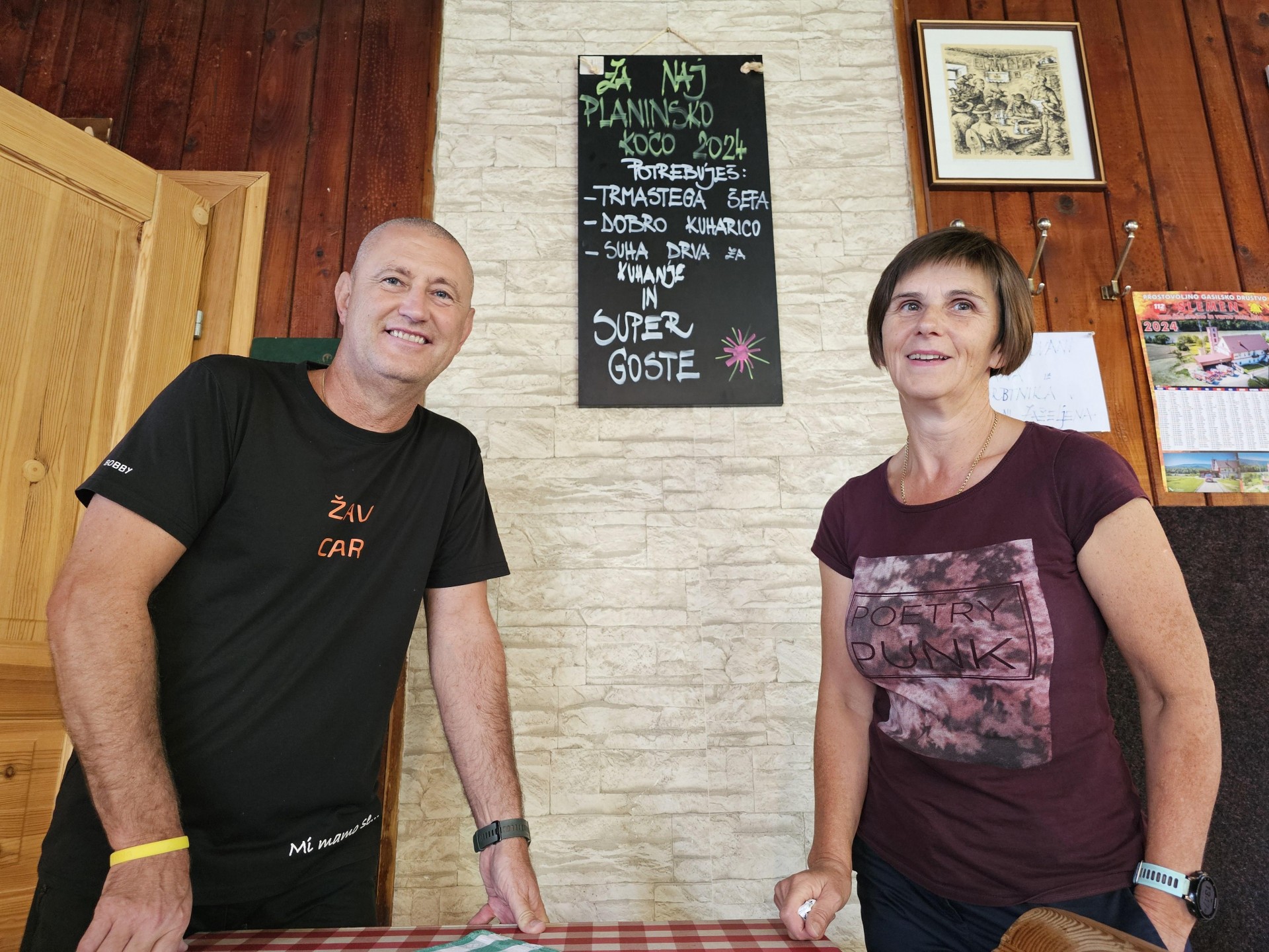 Srce Koče na Žavcarjevem vrhu sta najemnika Saša Popelar in Bobby Markoja, ki že tretje leto dihata s to prvo planinsko kočo na Kozjaku na meji z avstrijsko Štajersko, nepogrešljiva pa je tudi njuna pomočnica v kuhinji Saška Šrajner. "Vedno poudarjamo, da je težko najti dobrega najemnika oz. oskrbnika, težko pa je tudi najti planinsko društvo, ki te razume - da vsi razmišljamo v isto smer," je priznala Saša, hkrati pa poudarila, da je treba biti v odnosu s planinskim društvom tudi vztrajen in hkrati siten. Predvsem pa srčno predan oskrbniškemu delu, saj je Kozjak v senci Pohorja, zato se morata izjemno potruditi, da planinci obiščejo njuno planinsko kočo - in se tudi vrnejo. V dobrem tednu od razglasitve naj planinske koče se jima je nabralo nebroj čestitk, izjemno sta bila vesela te lovorike in presenečena ob veseli novici. Še ob spominu na 12. september, ko sta izvedela, da je Koča na Žavcarjevem vrhu naj planinska koča in sta od sreče jokala kot nebo tistega deževnega četrtka, so se jima v očesnih kotičkih zaiskrile solze - ki so pričale tudi o njunem trudu in energiji, da je Koča na Žavcarjevem vrhu dobro obiskana in tudi tako cenjena med obiskovalci. "Za naj planinsko kočo 2024 potrebuješ trmastega šefa, dobro kuharico, suha drva za kuhanje in super goste," sta zapisala na tablo v jedilnici, ta laskavi naziv pa je tudi najlepše darilo za skorajšnji 70. rojstni dan planinske postojanke, ki ga bodo praznovali 12. oktobra.
