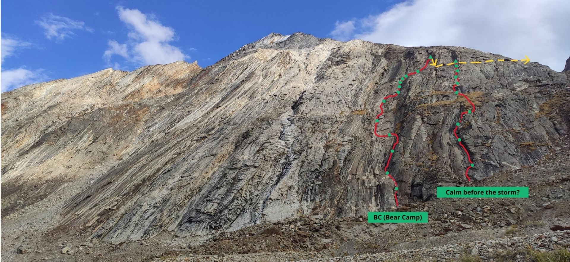 Vris smeri BC (Bear Camp) in Calm before the storm? (foto Urša Kešar)