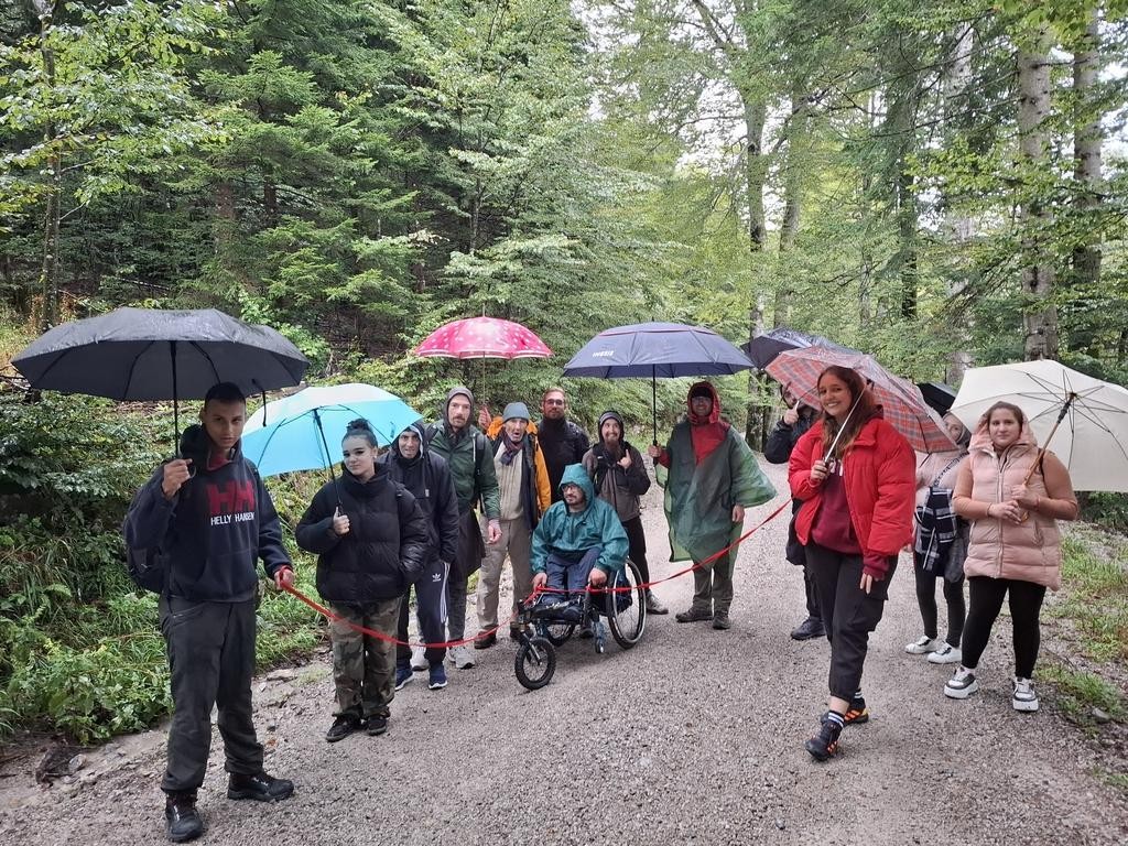 V soboto, 14. septembra, smo se slepi, slabovidni, gibalno ovirani, dolgotrajno bolni in nevrorazlični znova zbrali na inkluziijskem pohodu Skupaj v hribe, ki nas je popeljal do Jelenovega studeneca. Dež je bil le nepomembna informacija o vremenu, saj je v zraku vladala izjemna energija in odločnost, da premagamo pot. Z nasmehi in medsebojno pomočjo smo vsi prispeli do cilja, do koče pri Jelenovem Studencu, ki je svetel biser na jasi, skrit v mogočnih kočevskih gozdovih.