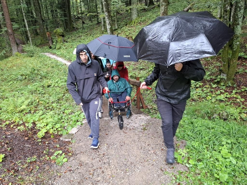 Dež, ki nas je spremljal na poti, ni oviral našega vzpona. Kot je povedala Joži, je bila skupina pohodnikov raznolika: slepi, slabovidni, osebe z nevidnimi invalidnostmi, ljudje po možganski kapi in tudi eden na invalidskem vozičku. »Ko sem se pridružila skupini, ki je šla po poti, ki je primernejša zame, sem v sproščenem klepetu komaj opazila, kdaj smo prispeli do cilja,« je povedala z nasmehom.