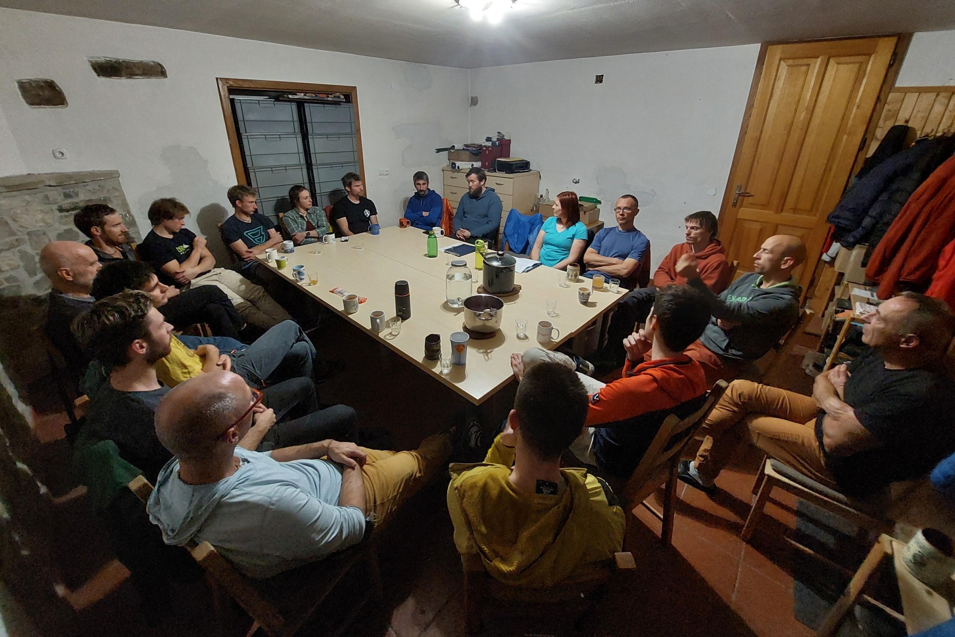 Približno polovica udeležencev razprave je po neformalnem večernem delu, kjer ne gre brez omembe odlične večerje in obdarovanja prisotnih s strani PZS, odšla novim izzivom naproti, preostali pa smo drugo jutro nadaljevali razpravo na temo mladinske selekcije in z njo povezanih izzivov ter taborov. Precejšnje število slednjih v zadnjem času je bila logična posledica (po)koronskega časa, ko je na pot odšlo bistveno manj odprav in so tabori ostali edina možna rešitev za dobro plezanje in srečevanje akterjev na sceni. Je pa inflacija tovrstnih akcij ob njihovi ne dokončno izvršeni strukturi (ni skrivnost, da si želimo tabore na več ravneh, ki bi spodbudili mlade k napredku in pomenili neko selekcijo) pripeljala do nekaterih neprijetnih odpovedi, ki so bile posledica pomanjkanja interesa za udeležbo visoko motiviranim vodjem navkljub. Že nekaj let se nadaljuje tudi iskanje pravih prijemov za angažiranje in organiziranje ekipe perspektivnih, kjer je na koncu prevladalo mnenje, da bi bilo delo smiselno zastaviti na podoben način kot za predlansko odpravo pod pokroviteljstvom KA v Patagonijo - skozi izborne tabore, na katerih bi se oblikovala ekipa, ki bi skozi leta lahko postopoma dvigovala svoje zmožnosti in cilje, pri čemer pa je bistvena težnja k (okvirno) enoletnemu načrtovanju aktivnosti.